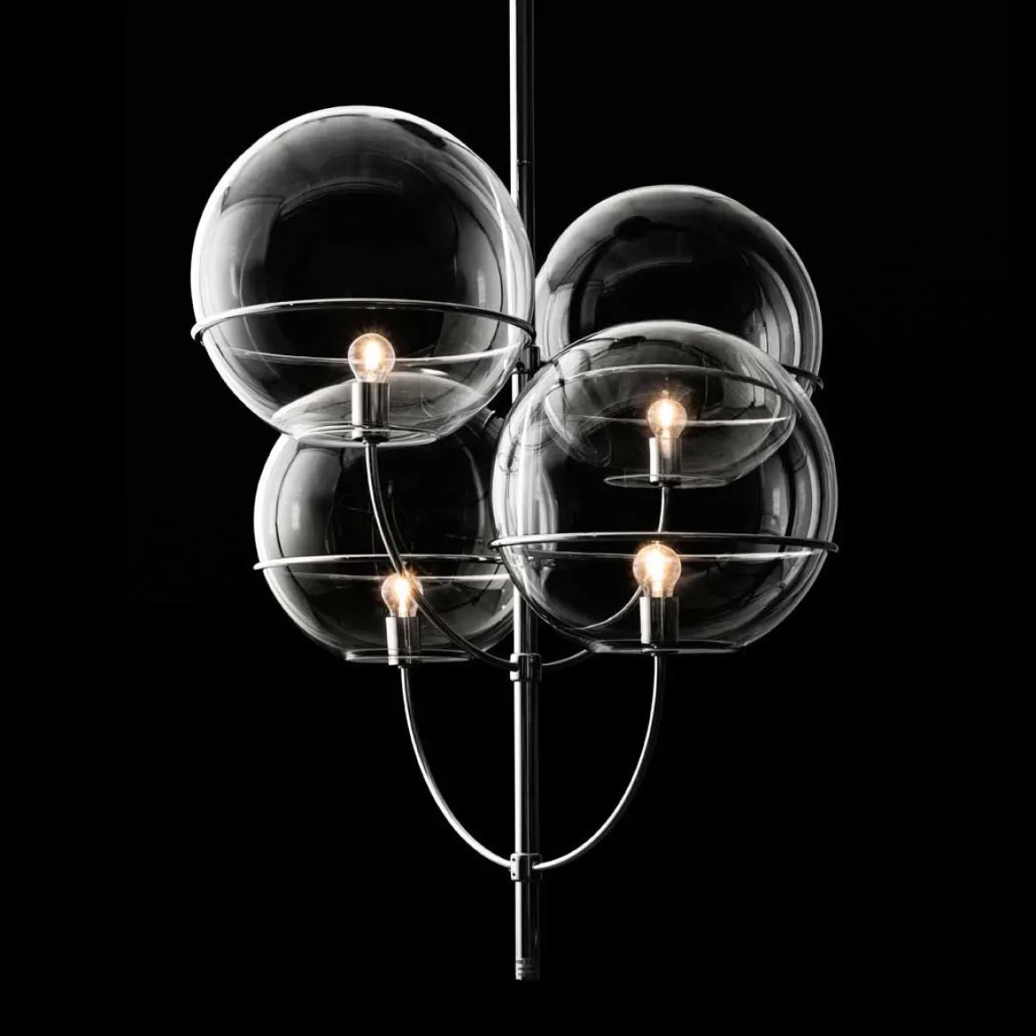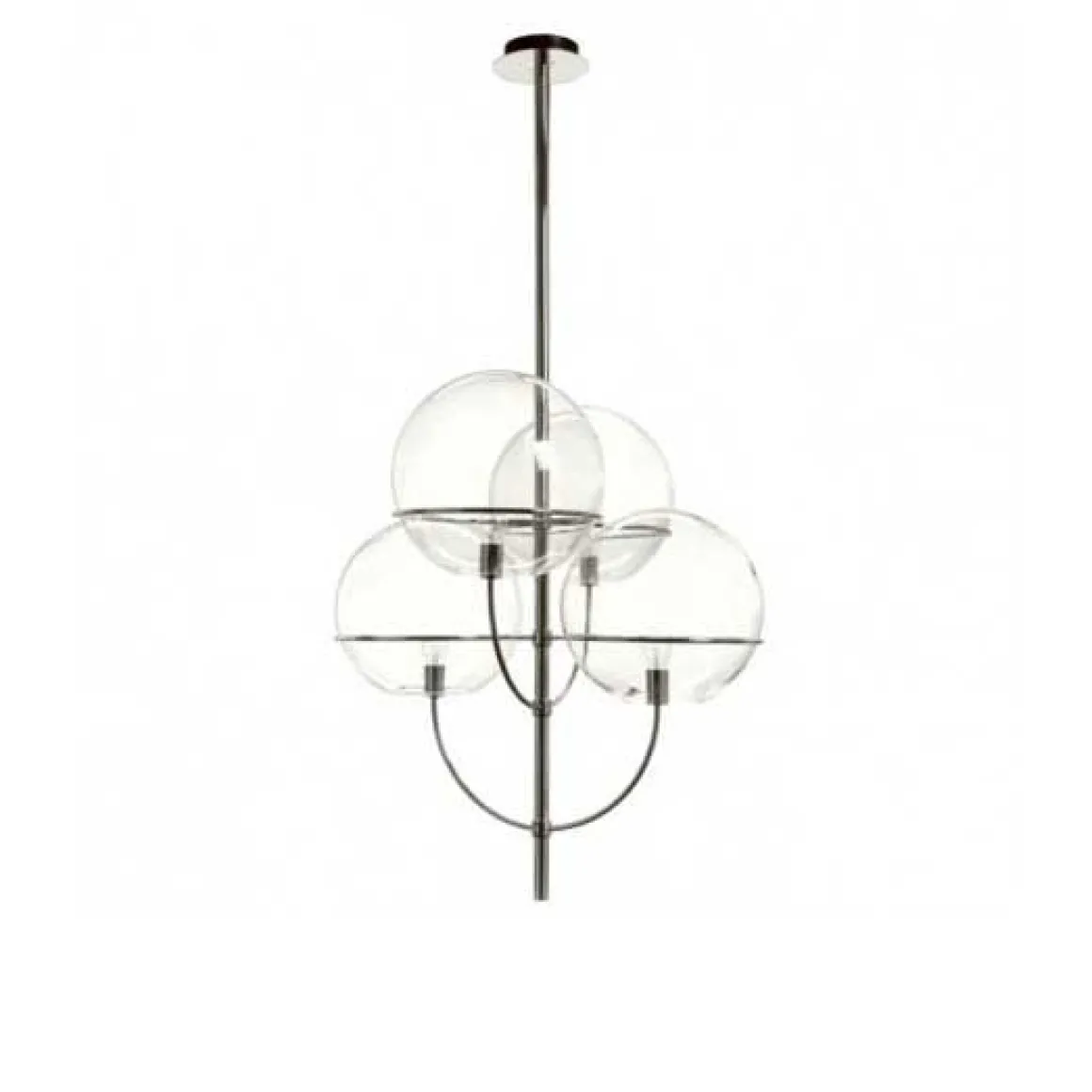 Lyndon est un projet de Vico Magistretti créé en 1977 et développé au fil des ans dans une vaste gamme comprenant de nombreuses variations et tailles : pour une utilisation en intérieur et en extérieur, ainsi que pour des suspensions, des lampes de sol ou des appliques murales. Le corps de style candélabre fini chromé, typique de la famille des lampes conçues par Magistretti, peut, de temps à autre, être courbé en fonction de l’utilisation requise de la lampe, pour englober les sphères de verre transparentes à l’intérieur desquelles les ampoules sont hébergées. L’amour de l’architecte et designer pour les formes simples et géométriques fait un retour réussi, faisant revivre le temps perdu et les atmosphères vécues dans une grande capitale de la fin du XIXe siècle à l’époque contemporaine avec un objet plus pertinent que jamais.