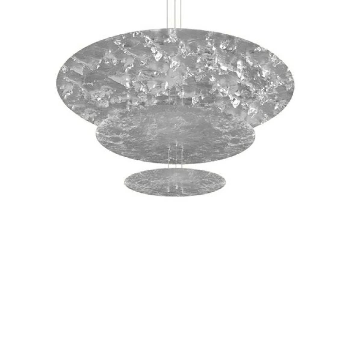 Etonnantee par sa beauté et sa forme généreuse, cette suspension sublimera votre intérieur par sa douceur et son côté « zen ». La suspension existe en plusieurs modèles composés de deux à cinq disques réflecteurs de diamètres différents. Les disques sont revêtus de feuille couleur or, argent ou cuivre. La suspension séduit par son élégance et son design, elle est idéale pour les grands espaces.
