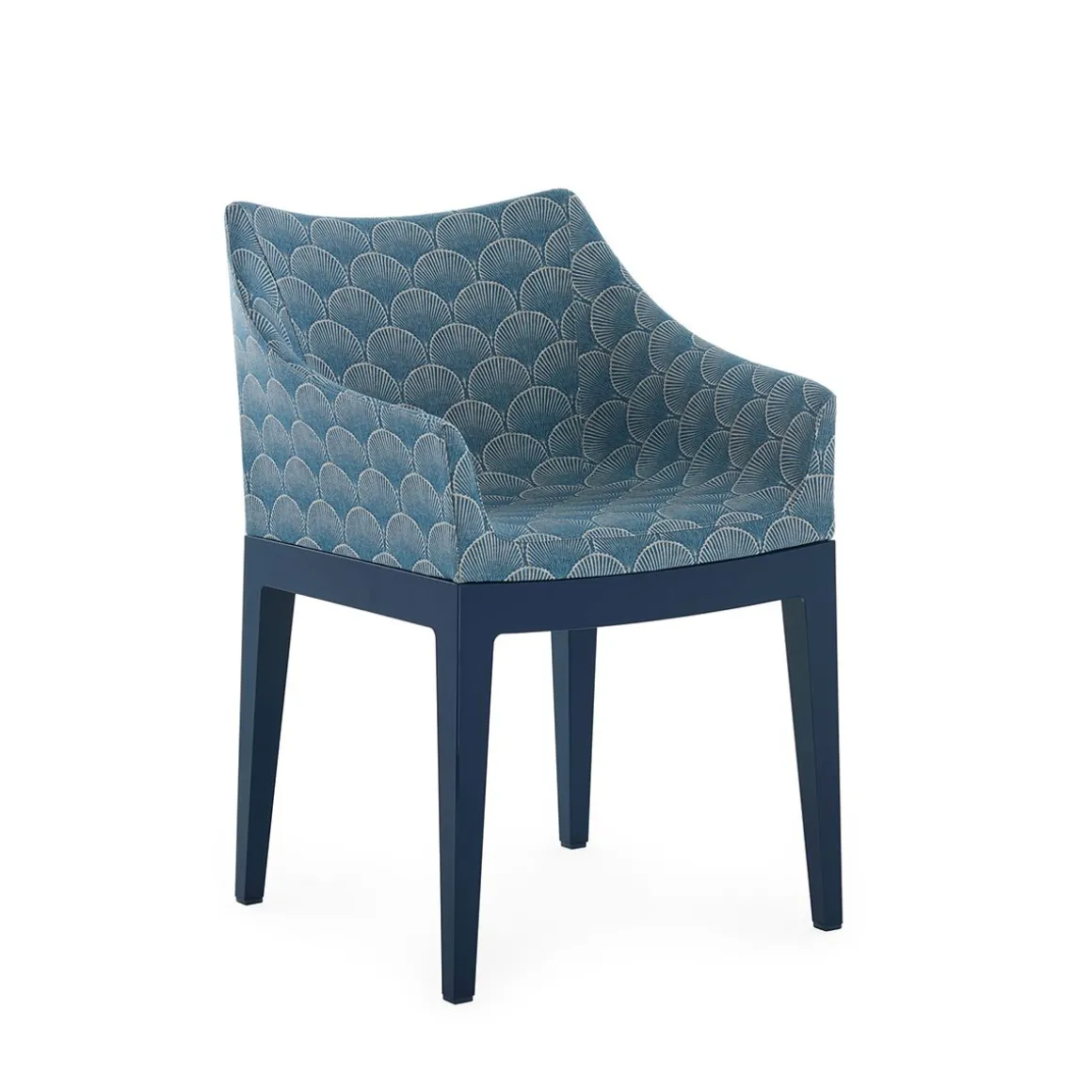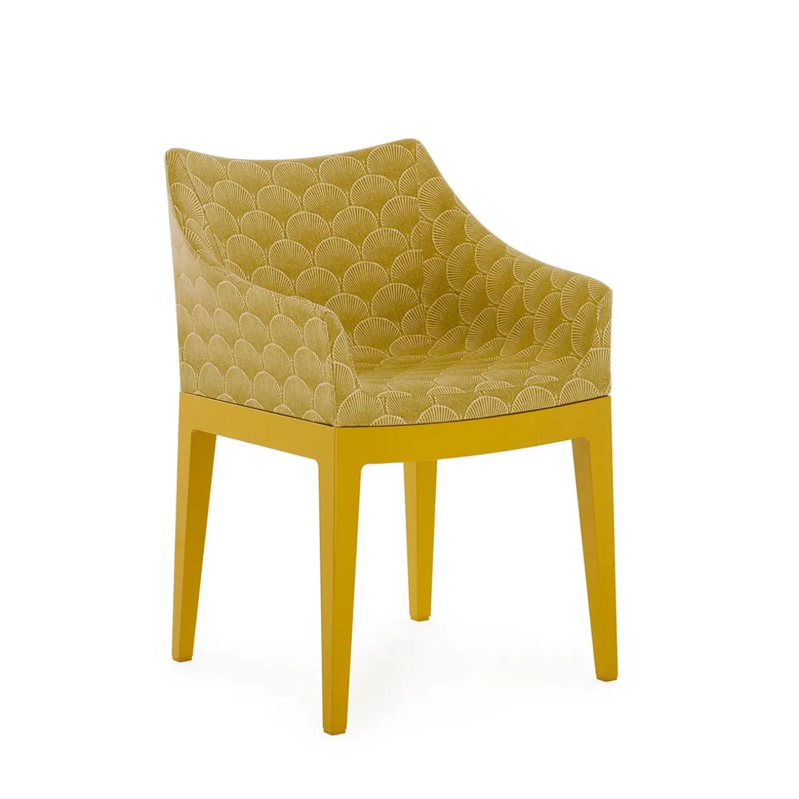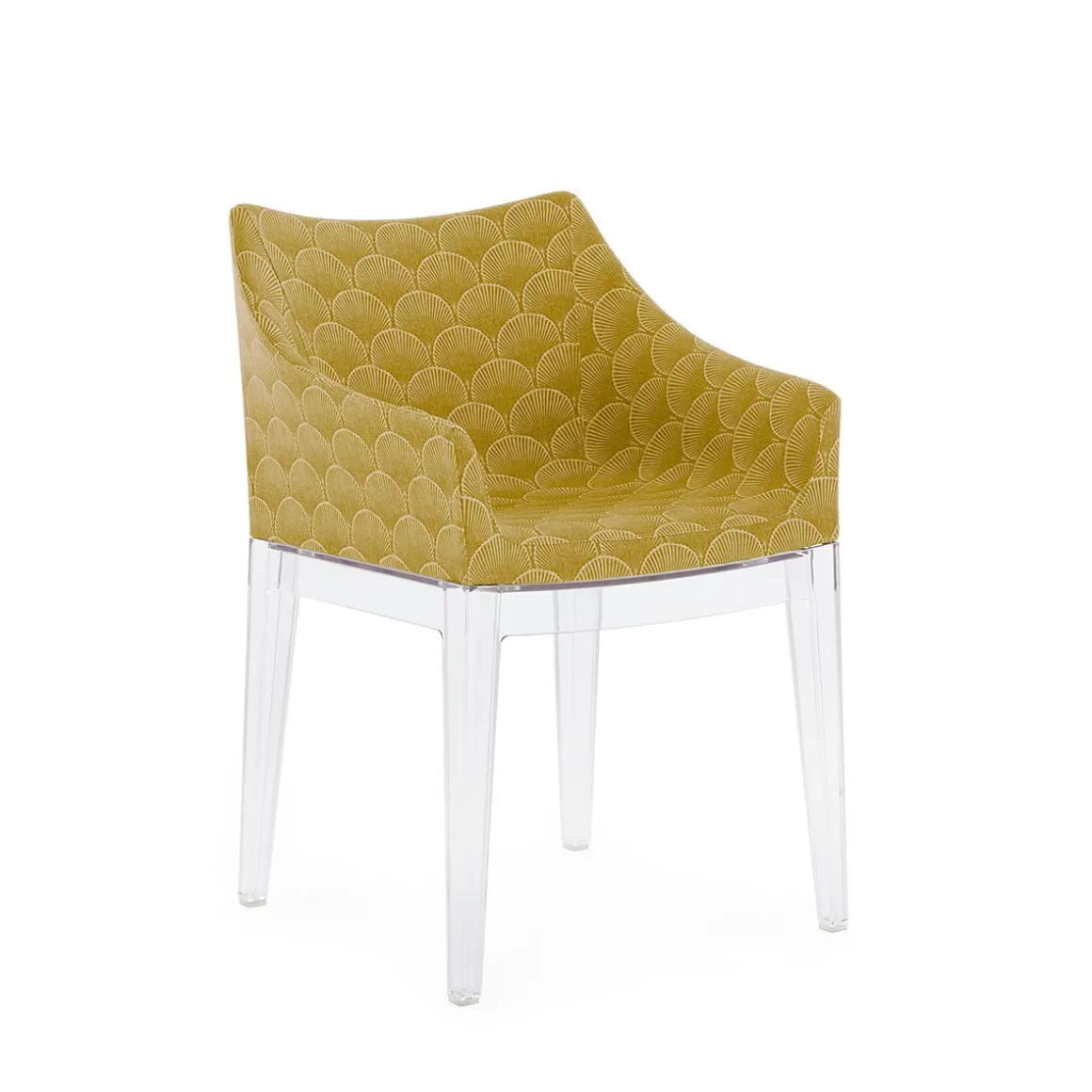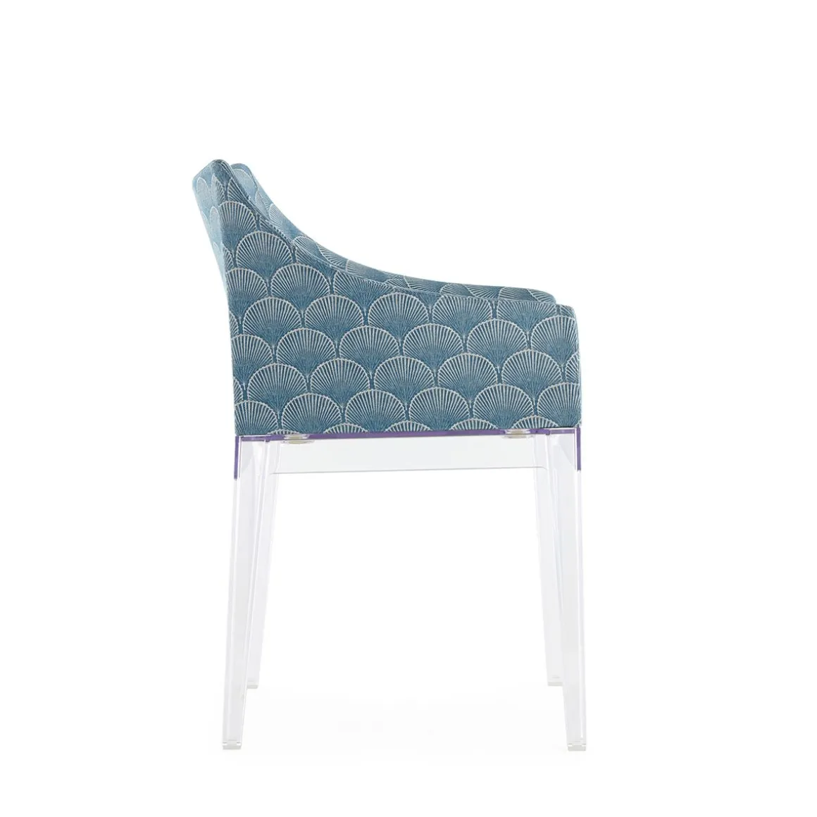 Les chaises Madame et Mademoiselle arborent toutes deux des coques en tissu idéales pour meubler des intérieurs sophistiqués et des espaces professionnels raffinés, sans excès. Pour célébrer le 150e anniversaire de Liberty London, les chaises ont été revisitées avec une nouvelle collection de tissus Liberty, prolongeant ainsi la collaboration lancée en 2024. Les structures se déclinent également en de nouveaux coloris, avec des versions en bleu, orange, bordeaux et moutarde, en plus de la version transparente classique. Liberty célèbre son anniversaire avec la majestueuse et exclusive collection « House of Liberty ». Celle-ci rend hommage à la longue histoire de l’entreprise, dont les origines remontent aux croquis et manuscrits raffinés des pionniers visionnaires du design. Cette collection fascinante comprend « Fanfare », un tissu extraordinaire inspiré d’un précieux fragment d’archives datant des années 1880. Avec son motif géométrique sophistiqué d’éventails de style asiatique, Fanfare célèbre l’héritage intemporel de la maison de design et incarne un langage esthétique qui a marqué les époques de la mode. Un mélange raffiné de couleurs et un tissage particulier confèrent au motif une élégance intemporelle et en font le choix idéal pour réinterpréter le célèbre fauteuil Madame de Philippe Starck. Le nouveau modèle Madame s’associe harmonieusement à de nouveaux pieds aux riches teintes enveloppantes de moutarde, bordeaux et bleu, en plus de la version transparente classique. Cette sublime rencontre entre tradition et modernité transforme n’importe quelle pièce en une œuvre d’art intemporelle.
