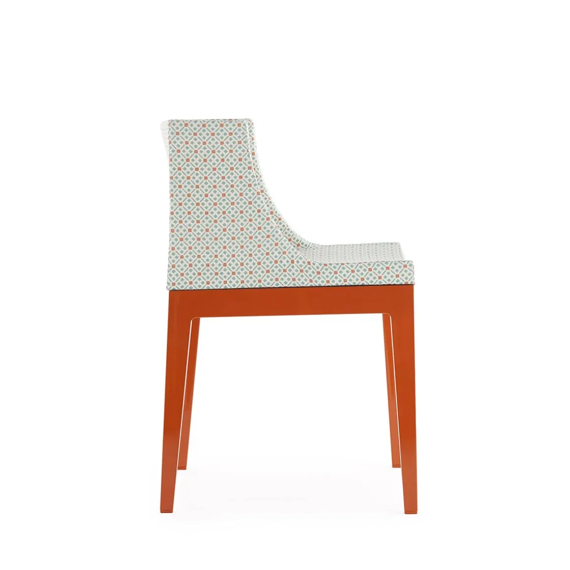 La collection de tissus allie tradition et modernité pour apporter élégance et fraîcheur à la chaise Mademoiselle de Philippe Starck, désormais disponible avec des pieds en revêtement moutarde, orange et bleu, ainsi qu’en transparent classique.