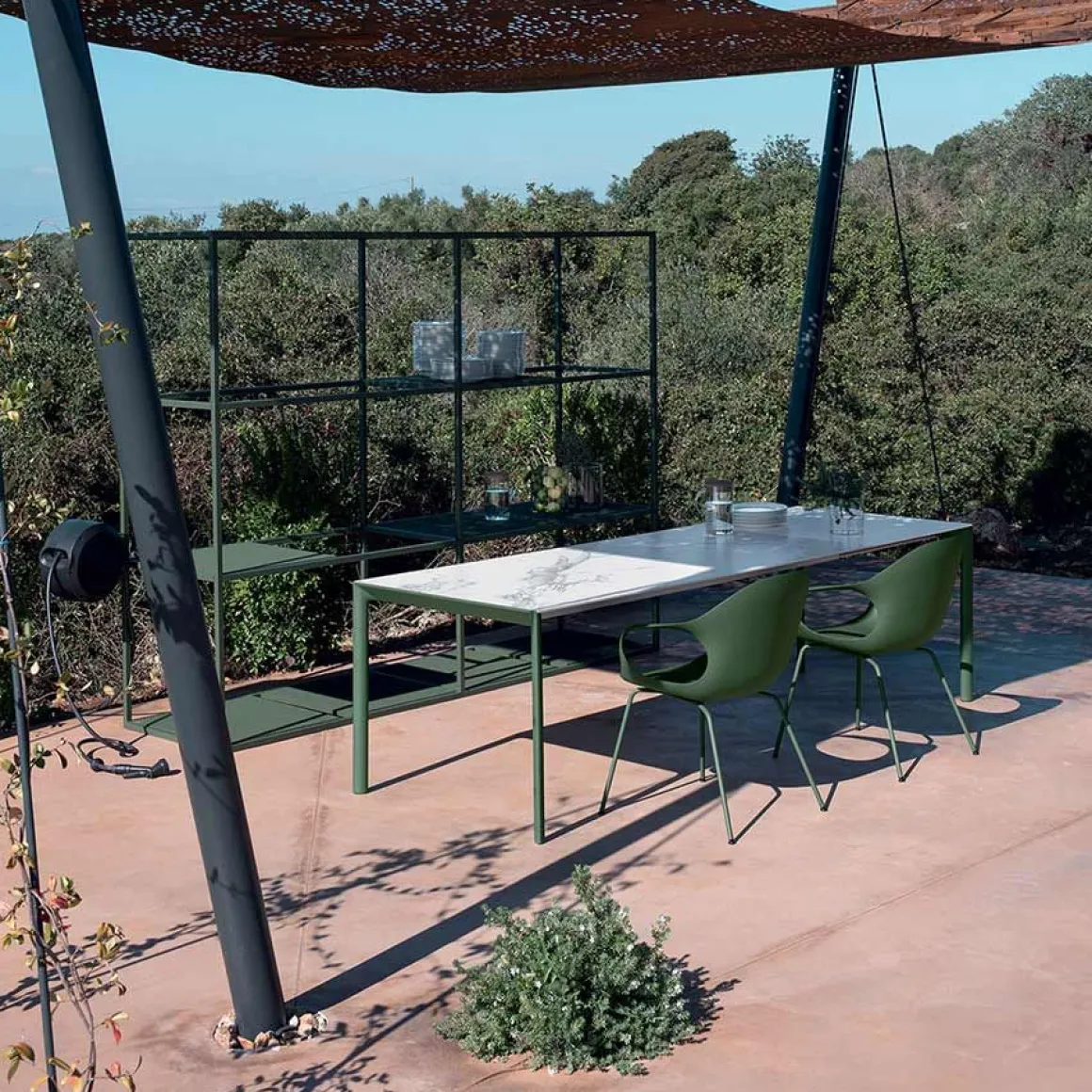 Coloris : plateau blanc / piètement vert olive