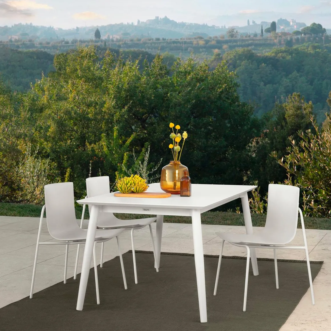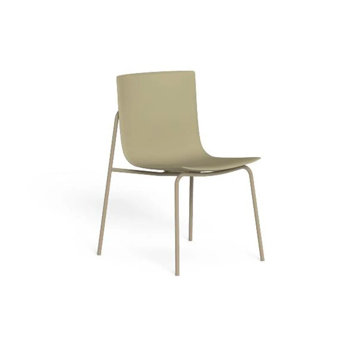 La large assise de la chaise de salle à manger Malè en matière plastique soutenue par une structure en acier rigide et carrée, la rend parfaite pour compléter votre salon de jardin.