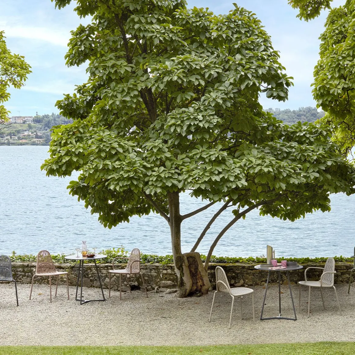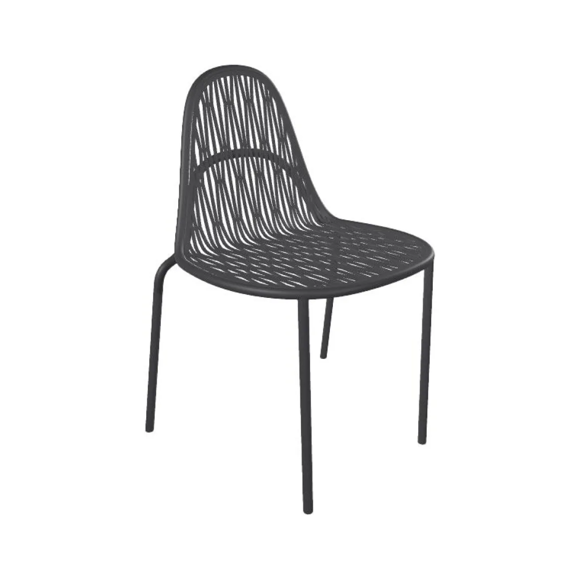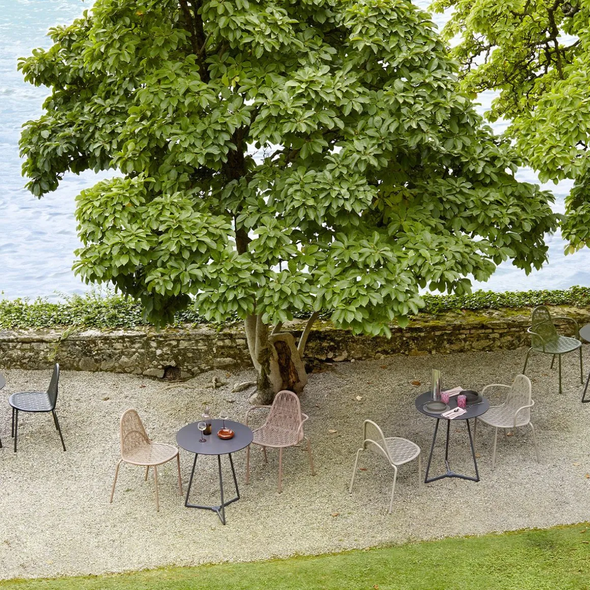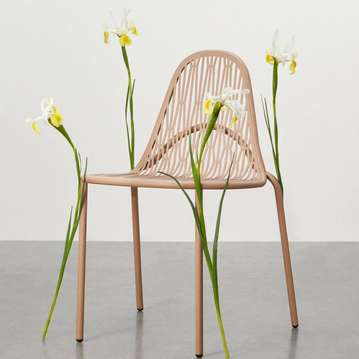 Malvasia est une chaise d’extérieur qui projette des jeux d’ombre et de lumière gracieux et rigoureux à travers son tissage métallique.