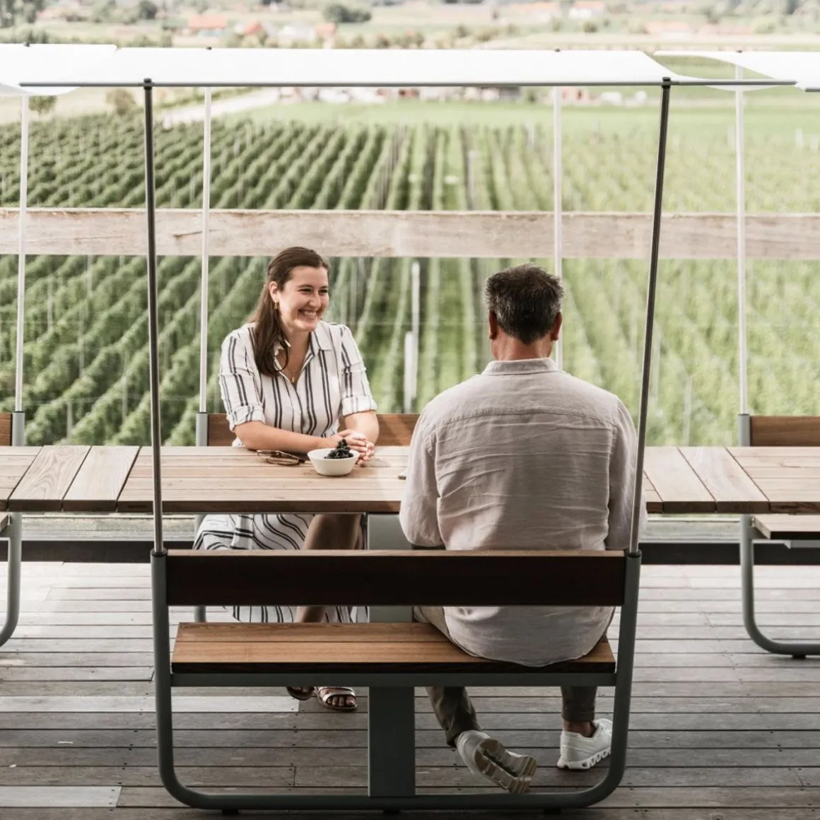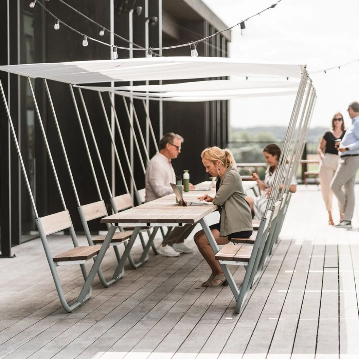Manille de Extremis par Dirk Wynants. Manille associe idéalement praticité et plaisir. Conçue avec bancs intégrés, cette table de pique-nique accueille confortablement quatre personnes sur ces bancs, tandis que les bouts de table sont réservés aux personnes à mobilité réduite – ce qui fait de Manille une table inclusive et accessible à toutes et tous. Les bancs fixes confèrent un aspect épuré au design et leur légère inclinaison offre un confort d’assise supplémentaire. Avec son design ludique disponible en différentes couleurs, Manille ajoute une touche de confort et de personnalité à tout espace extérieur. Mais ne vous laissez pas tromper par ce design ludique. Manille est construite pour durer, avec des matériaux de la plus grande qualité, garantissant durabilité et performance à long terme. Soit dit en passant, Manille est livrée dans des emballages plat, ce qui minimise son empreinte écologique. Et ce faible encombrement de transport à toutes les phases de la production contribue absolument à la durabilité du produit.