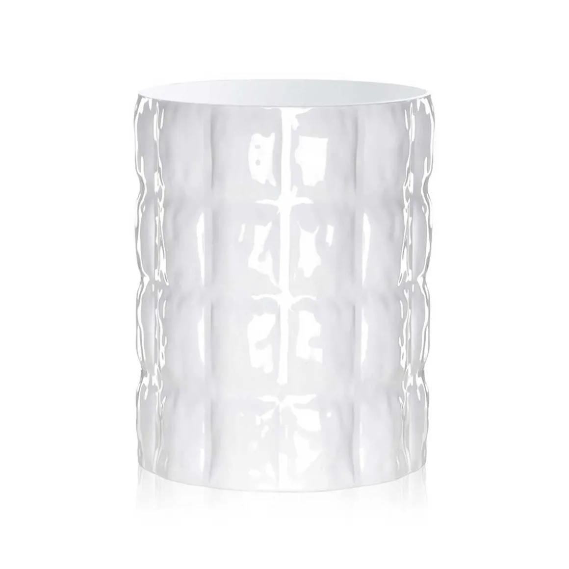Matelassé est un vase-conteneur de forme ronde, coloré et drôle, parfait pour n’importe quelle pièce de la maison La particularité de ce vase, dont l’aspect est à la fois unique et original, réside dans l’apparence de la matière qui rappelle un tissu gaufré avec ses formes sinueuses naissant des différentes épaisseurs de la surface. Un complément d’ameublement qui conjugue douceur de l’âme et résistance de la structure grâce au plastique de premier choix utilisé pour la fabrication des produits. Matelassé est disponible en plusieurs couleurs, en version transparente et opaque.