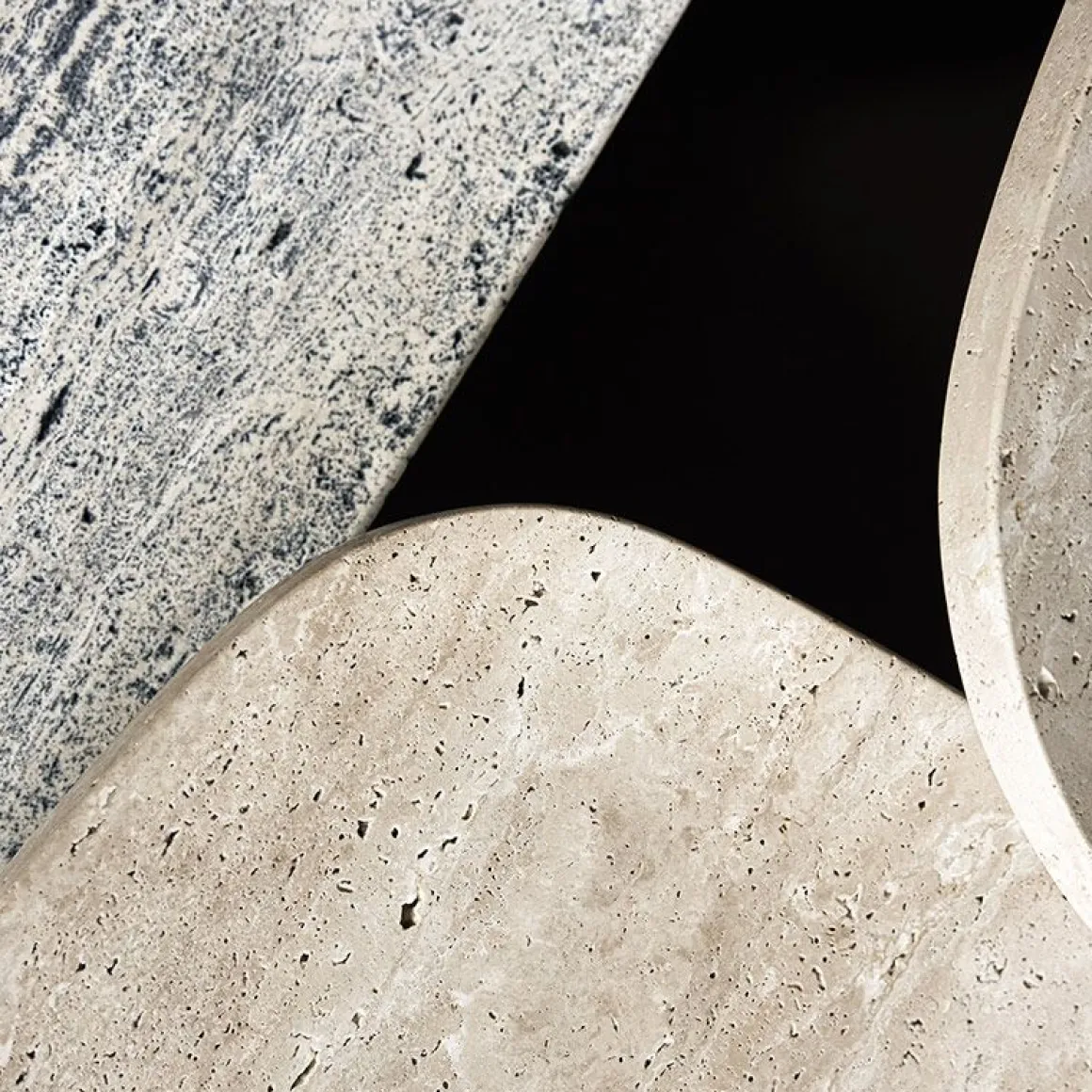 Plateau : fraisé en travertin naturel ou empreintes de couleur indigo