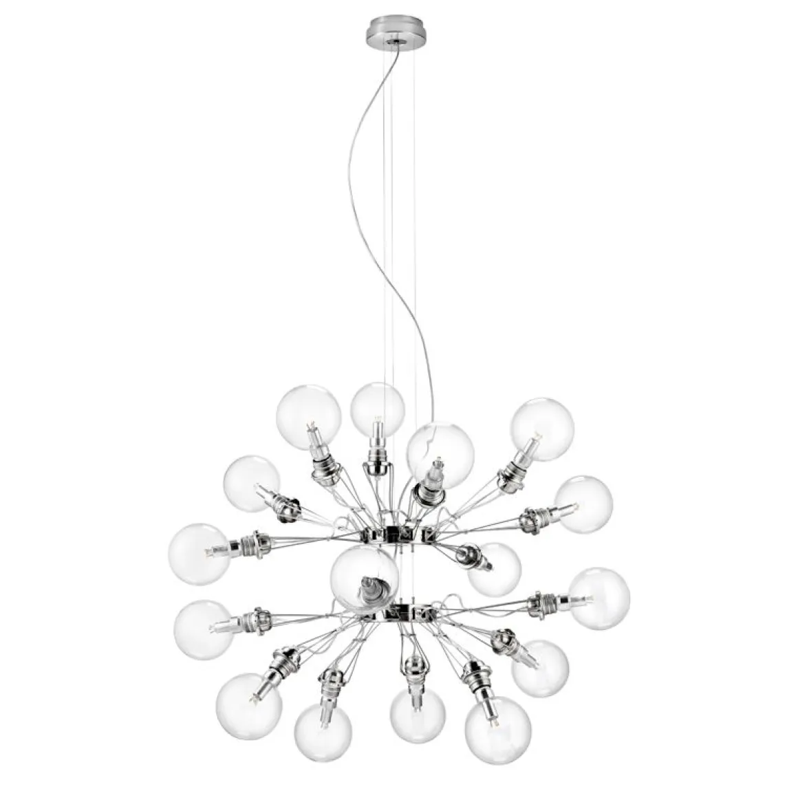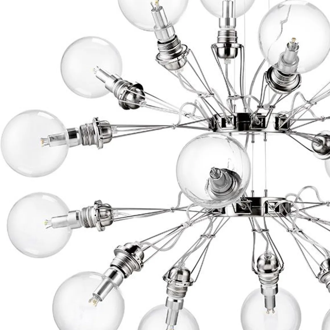 MATRIX DOPPIA est une suspension constituée de deux organes centraux et de seize bras. Les bras peuvent être déplacés verticalement, ce qui permet à la suspension de parfaitement utiliser l’espace. Les bras s’articulent très facilement et ne demandent aucune position centrale ni symétrique. On aime le style industriel de la MATRIX.