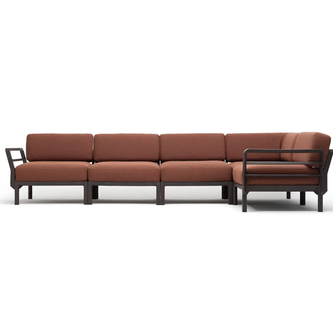 Maximo 5 de Nardi. Maximo 5 est un canapé modulaire doté d’une structure en résine régénérée et de tissus à haute teneur en matières recyclées qui, à partir d’un seul module, permet de réaliser d’innombrables configurations. Dossiers et accoudoirs s’enclenchent sur tous les côtés de l’assise grâce à un système de blocage ne nécessitant pas de vis.