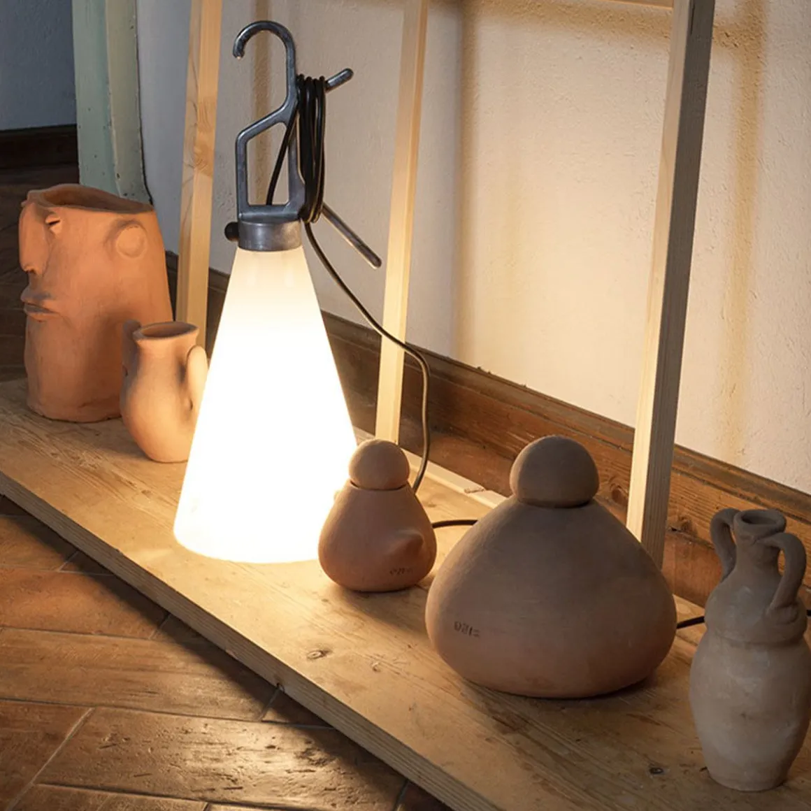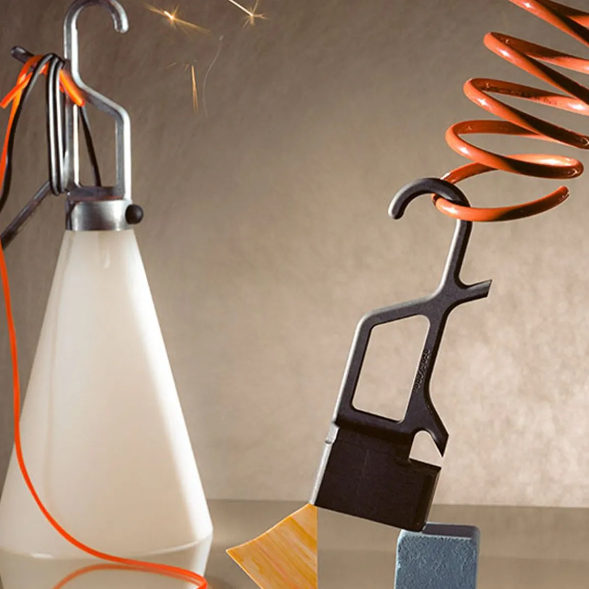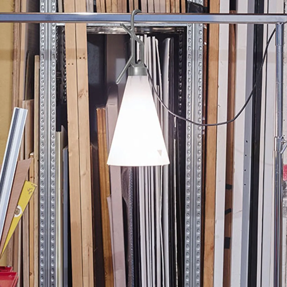 May day anniversary de Flos par Konstantin Grcic. En édition limitée la May day coloris aluminium. May Day est une lampe iconique et balladeuse. Elle comporte un diffuseur conique en polypropylène opalin moulé par injection, une poignée qui sert également à enrouler le câble, en aluminium et un bouton interrupteur sur la poignée recouvert d’élastomère moulé par injection.