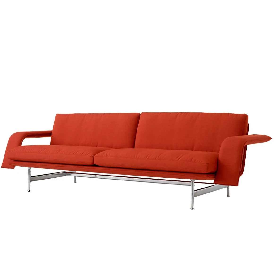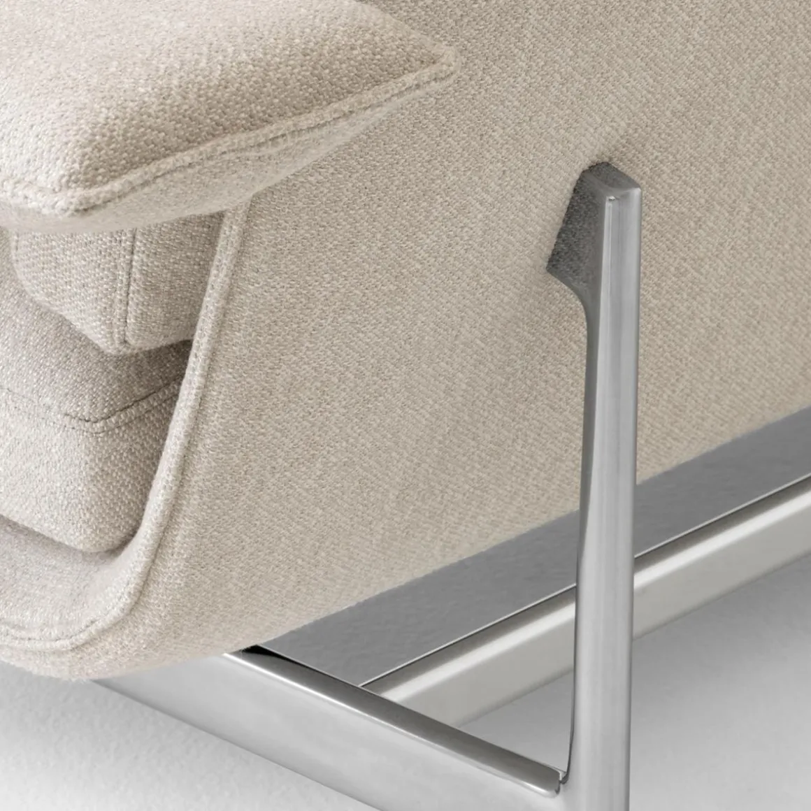 Matériaux : cadre en contreplaqué, mousse HR, ouate de polyester, acier, aluminium poli ou thermolaqué, tissu ou cuir