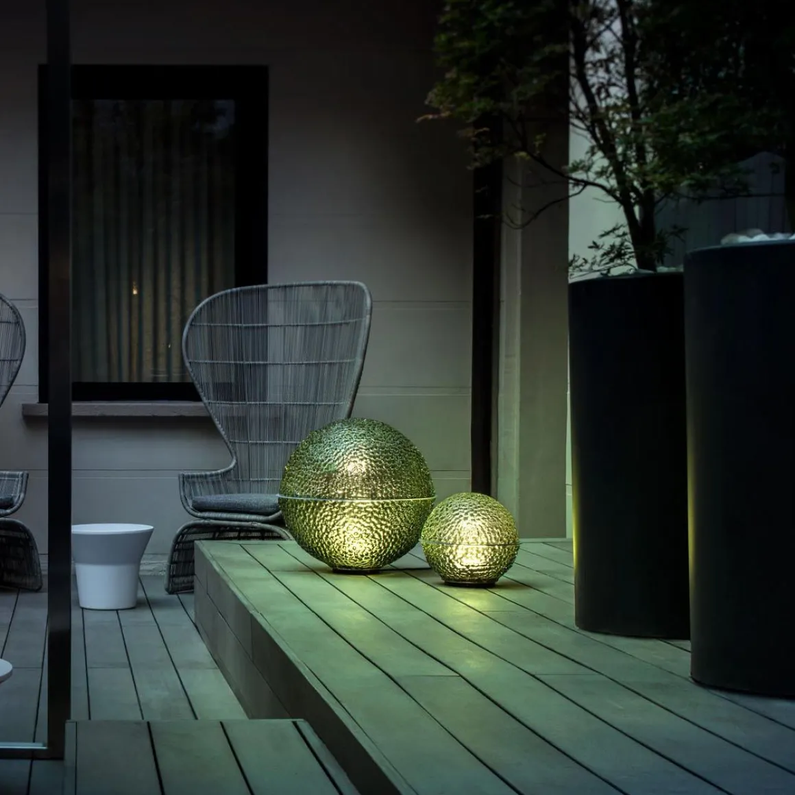 Enzo Catellani a réalisé pour Catellani & Smith sa première collection de lampes pour l’extérieur, en réponse à la tendance qui a vu, au fil des ans, l’espace d’habitation se déplacer vers l’extérieur avec les terrasses et les jardins, en prolongeant ainsi l’habitation. L’objectif principal d’Enzo Catellani était de réaliser une collection de «lampes d’intérieur transportées à l’extérieur»: des corps d’éclairage conçus pour l’extérieur mais en mesure de rendre la même chaleur et la même atmosphère que la lumière d’intérieur. Le grand protagoniste de cette collection est le verre, qui est modelé soigneusement à la main avant son refroidissement complet.
