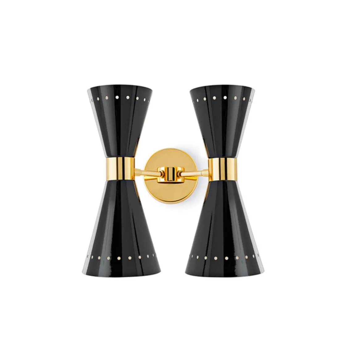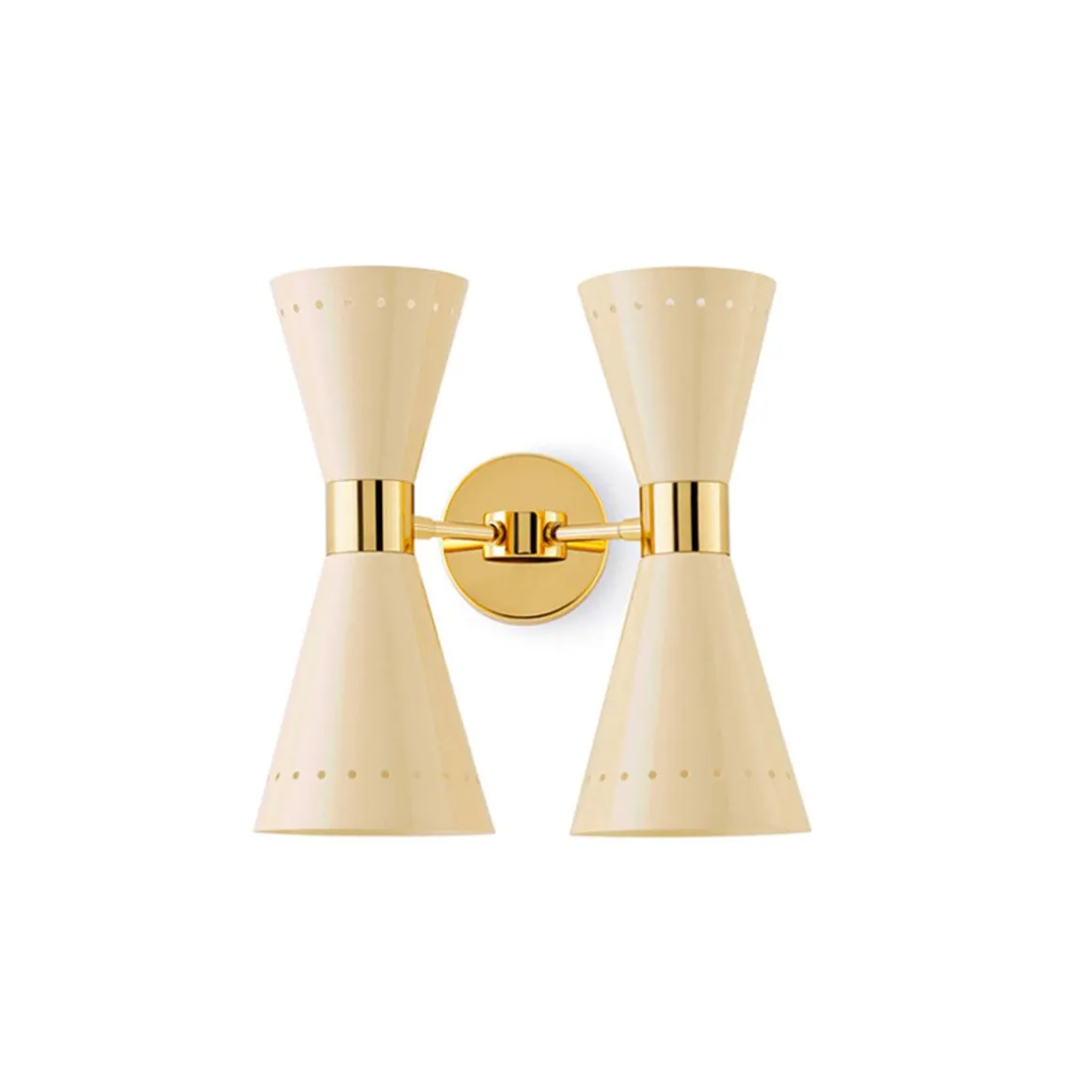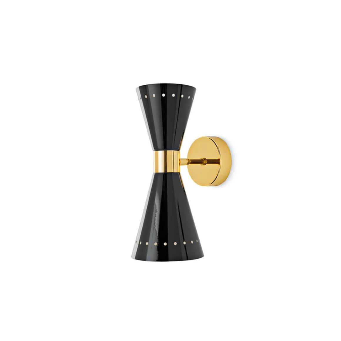 Megafono est une lampe emblématique des années 1950 avec une lumière directe et indirecte. Elle associe une précieuse structure en laiton avec dorure galvanique les abat-jour coniques en finition ivoire ou noir brillant, éclairant la pièce avec élégance.