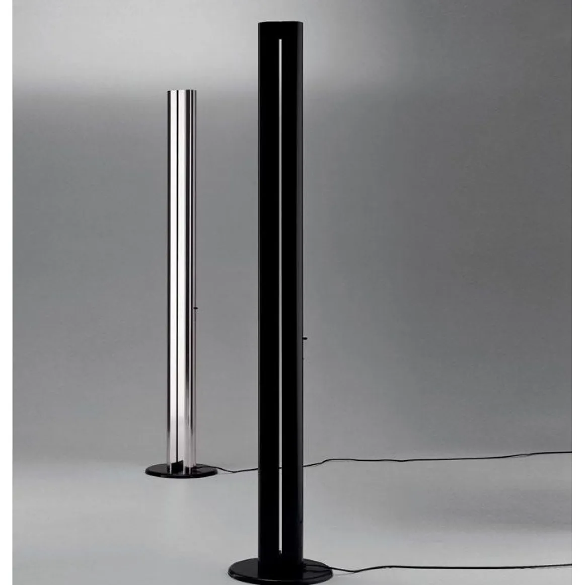 Ce lampadaire classique au design intemporel des années 70 se distingue par sa répartition de la lumière réfléchie indirectement. Son pied droit est en acier enrobé d’une résine synthétique thermoplastique, et la tige est en aluminium anodisé brillant ou laqué noir avec régulateur d’intensité lumineuse. Ce lampadaire offre une touche épurée à votre intérieur. La lumière émane dans votre intérieur tout en étant minimaliste et design.