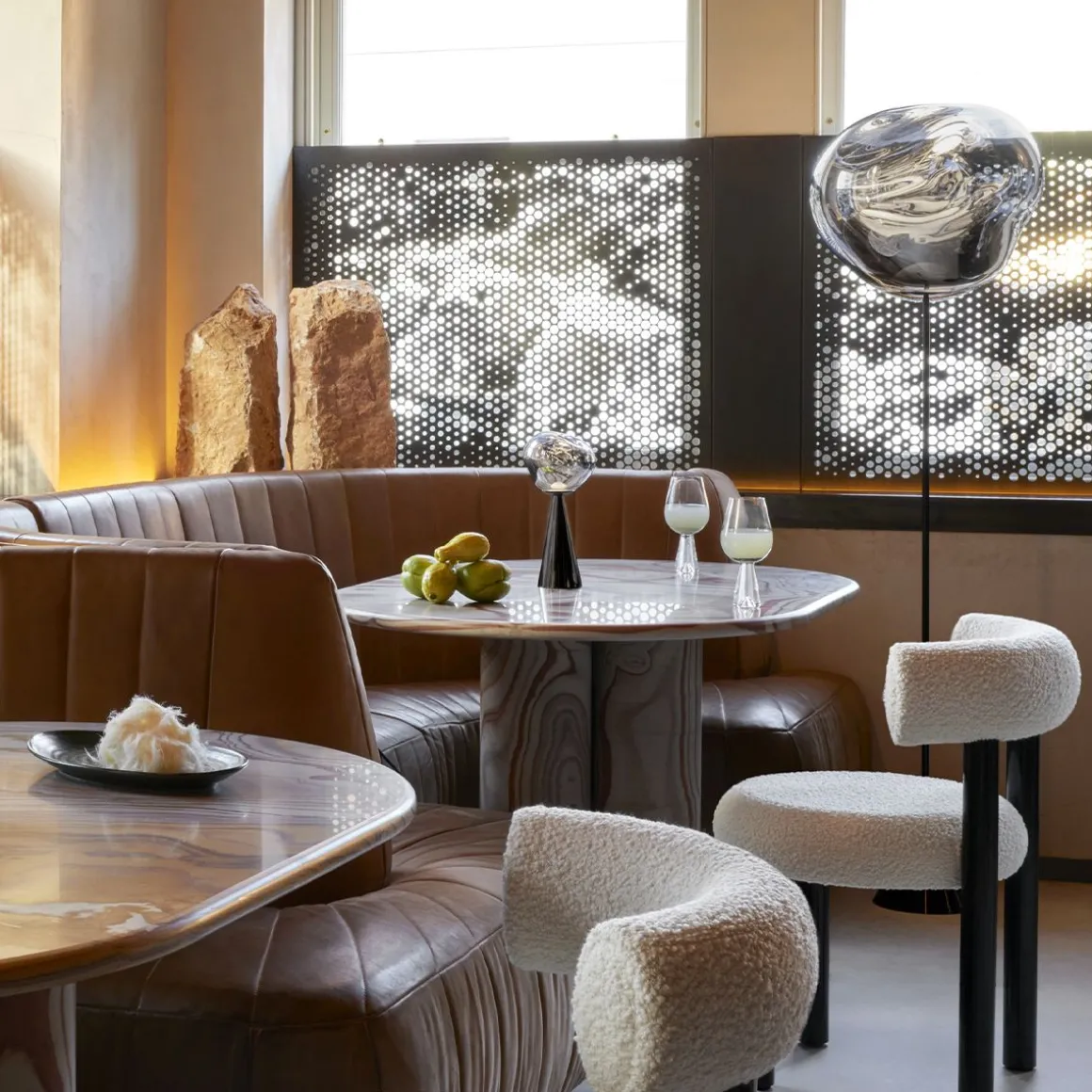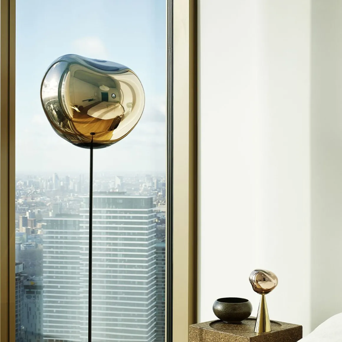 Melt évoque le verre en fusion, l’intérieur d’un glacier en train de fondre ou des images de l’espace lointain. Une lumière imparfaite, organique et naturaliste qui produit un effet de verre soufflé à chaud envoûtant. Melt est créé par un processus de moulage par soufflage et de métallisation sous vide pour obtenir des orbes fondus avec une luminosité abondante et inhabituelle. La famille Melt comprend des suspensions, des lustres, des systèmes de suspension, des portables, des luminaires de surface, des lampes de table et des lampadaires.