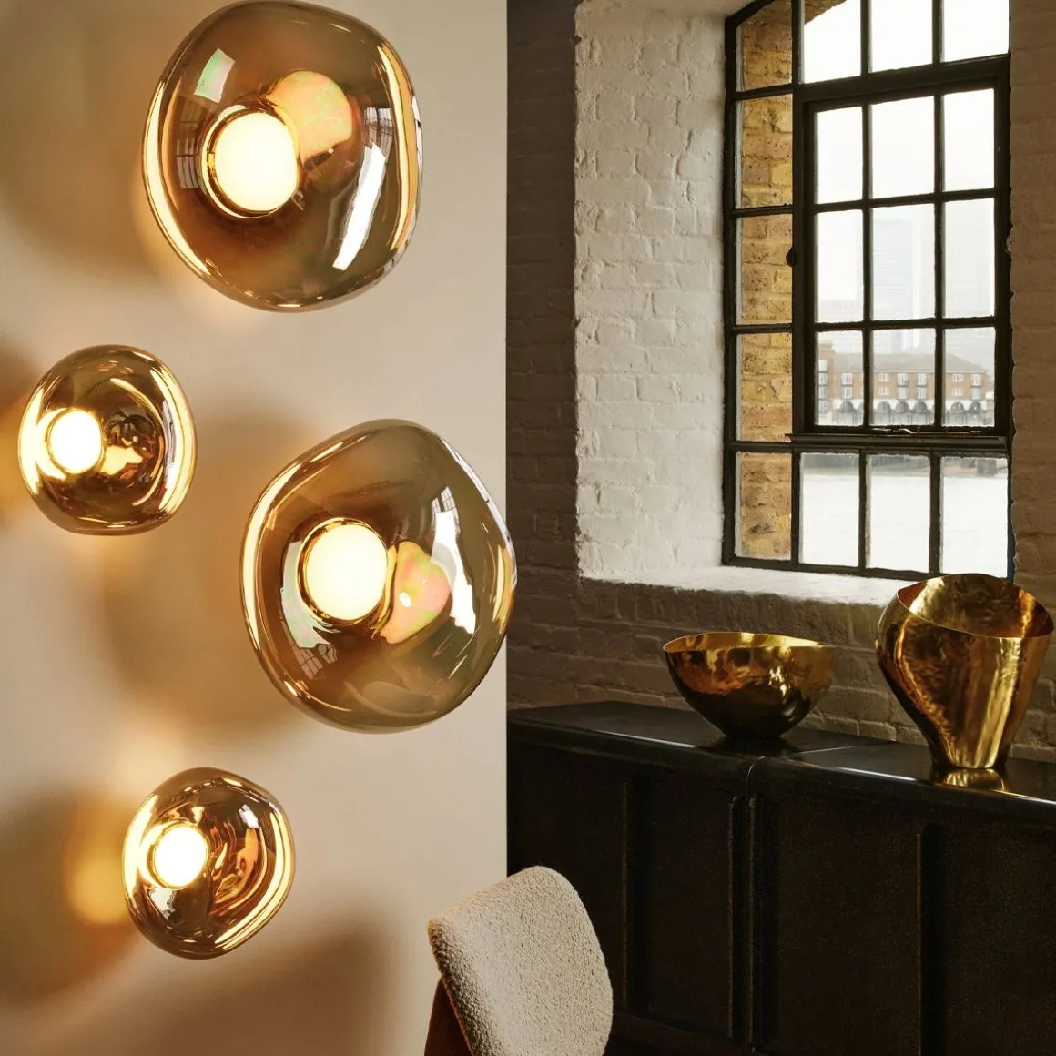Écrasée, pressée, déformée et moulée en un floc plus plat, la luminosité extraordinaire de Melt a trouvé une nouvelle applications en tant qu’applique. Avec son effet métallisé instantanément reconnaissable, cette dernière évolution de Melt est désormais destinée à être montée sur n’importe quelle surface. La polyvalence de la nouvelle teinte est renforcée par la douce lueur d’une nouvelle ampoule. Il y a vraiment un MELT pour chaque occasion.