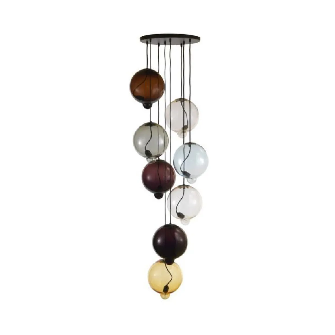 La suspension Meltdown a été conçue par Johan Lindstén pour la maison de design italienne Cappellini. La source d’inspiration a été la catastrophe nucléaire de Fukushima : Le corps sphérique des lampes Meltdown symbolise le processus de fusion – meltdown. Dans chaque petit renflement, les ampoules donnent l’impression de s’enfoncer lentement dans le corps de la lampe. Cette suspension émet une lumière douce et diffuse, ce qui en fait un éclairage chaleureux. Meltdown convient non seulement aux salles privées comme la salle de séjour ou la salle à manger, elle convient aussi aux restaurants, bars, cafés ou hôtels. Ce luminaire est fait de verre soufflé main.