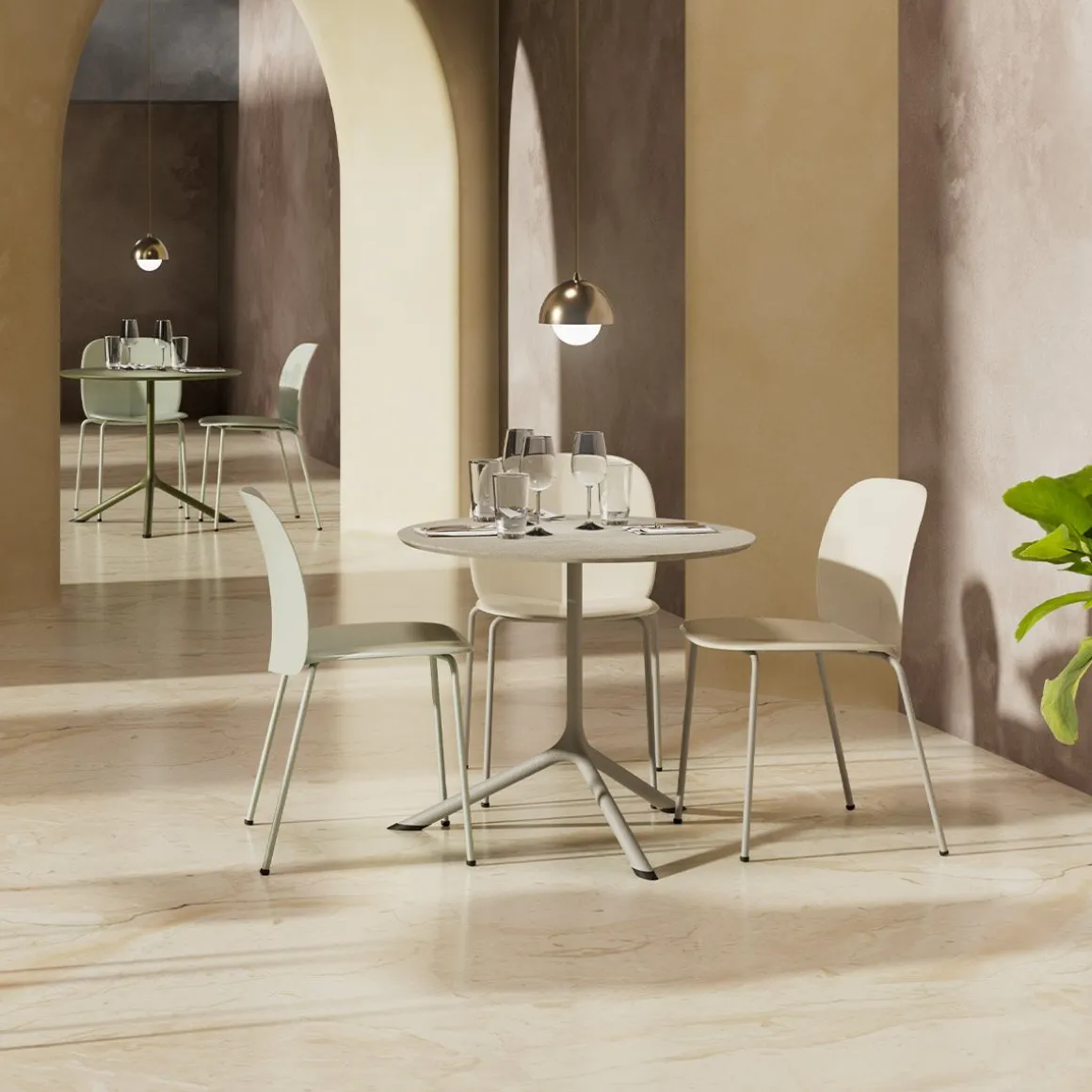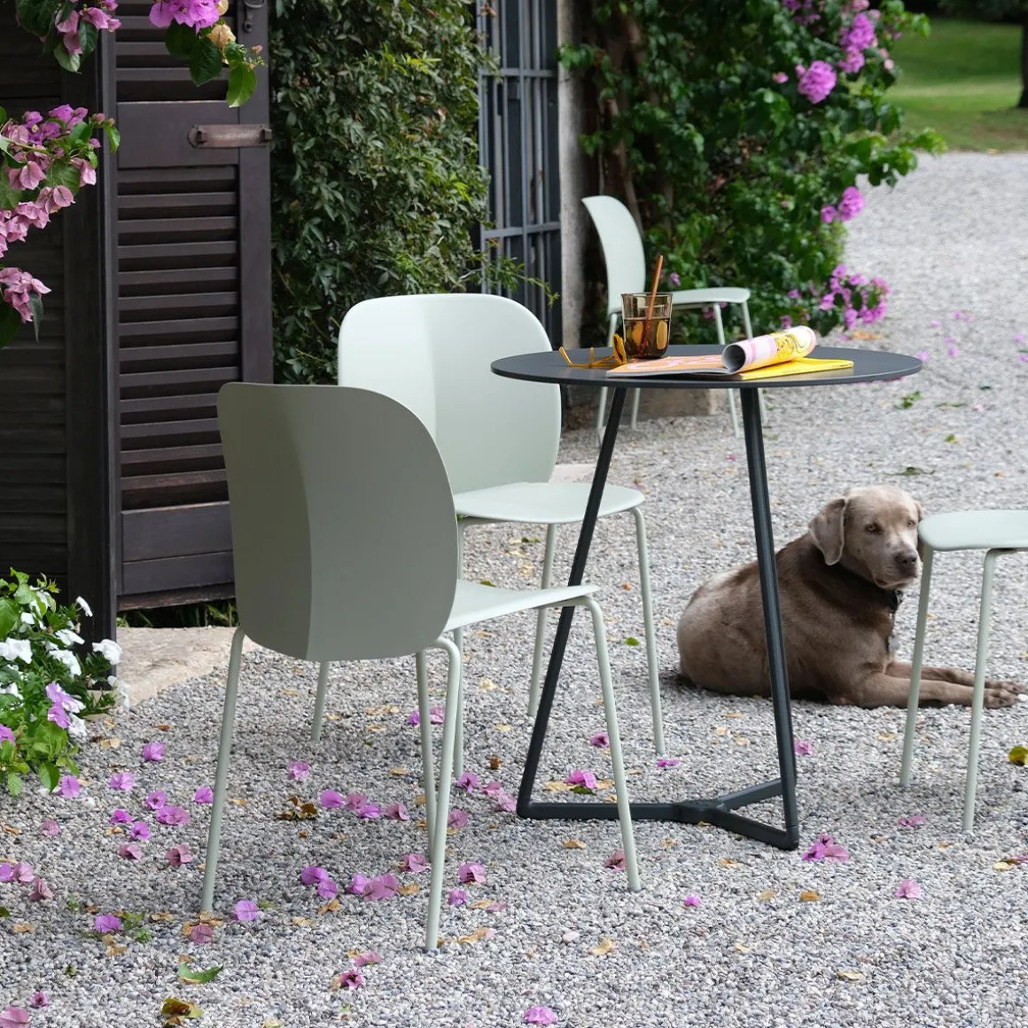 Fraîcheur et confort écologique. Mentha est une collection qui s’inspire visuellement du monde de la nature et de ses lignes harmonieuses et attrayantes, dans laquelle le thème écologique est synthétisé sous une forme facile à reconnaître : la feuille. Dans sa version essentielle en technopolymère, elle peut aussi bien être utilisée en intérieur qu’en extérieur. Le matériau utilisé n’est pas moins important que la forme : du plastique recyclé certifié, un matériau qui évolue et est de plus en plus utilisé. Mentha est une chaise en technopolymère.