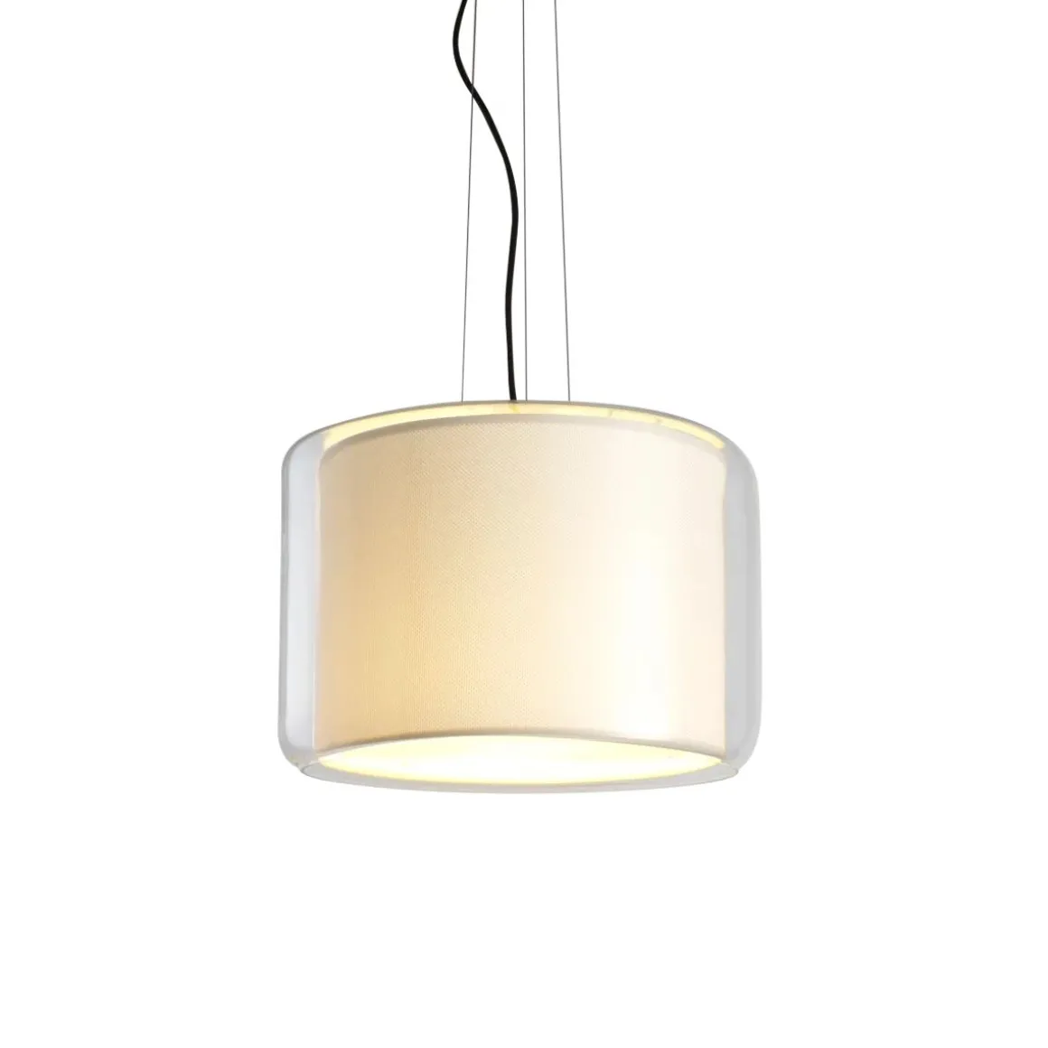 Mercer est une belle et élégante lampe. La fusion de différents types de matériaux aboutit à un résultat spectaculaire. La suspension est composé d’un abat-jour textile qui flotte dans une structure en verre soufflé transparent. Le diffuseur intérieur est disponible en rubans de coton brut ou noir et dans une nouvelle version moderne et minimaliste en blanc nacré.