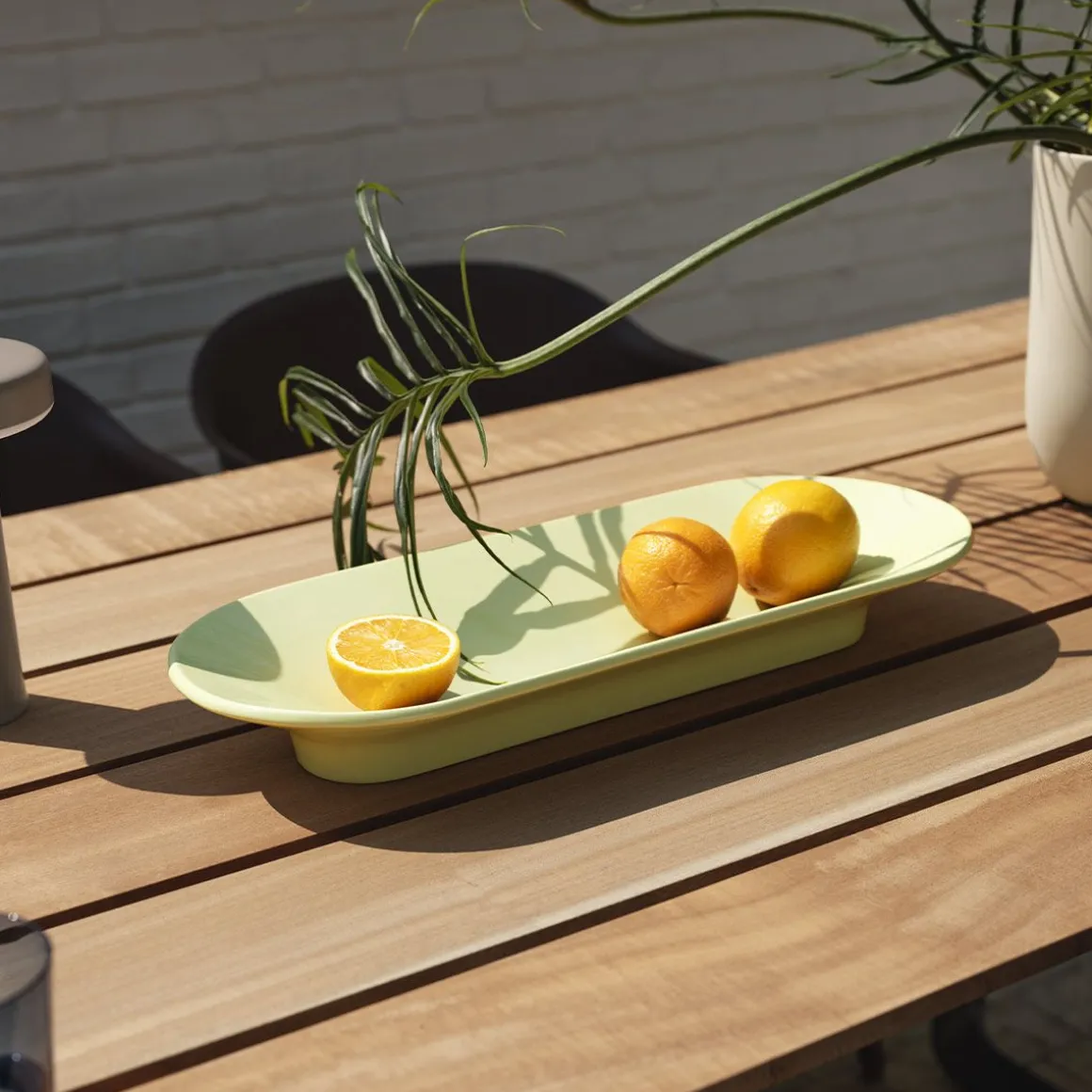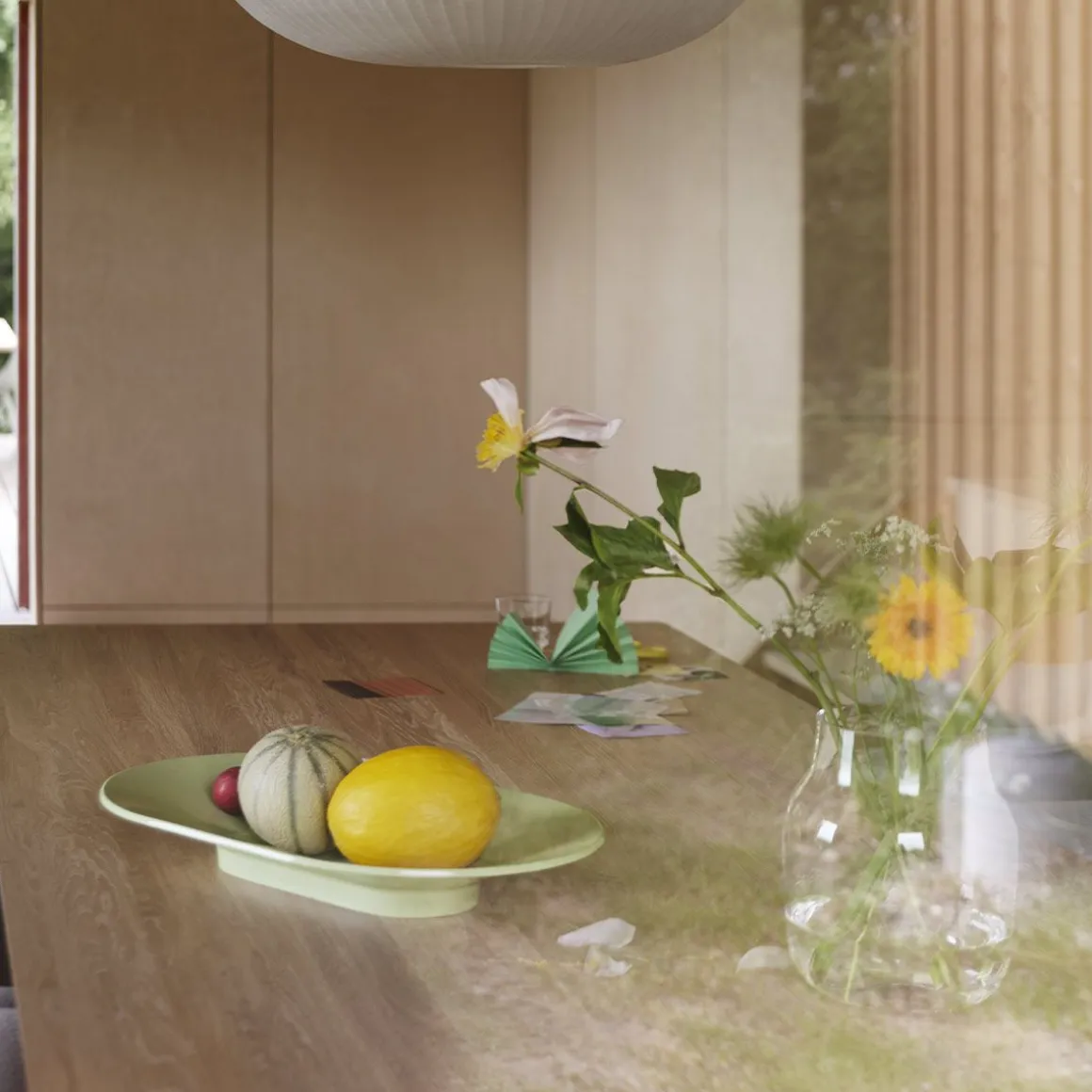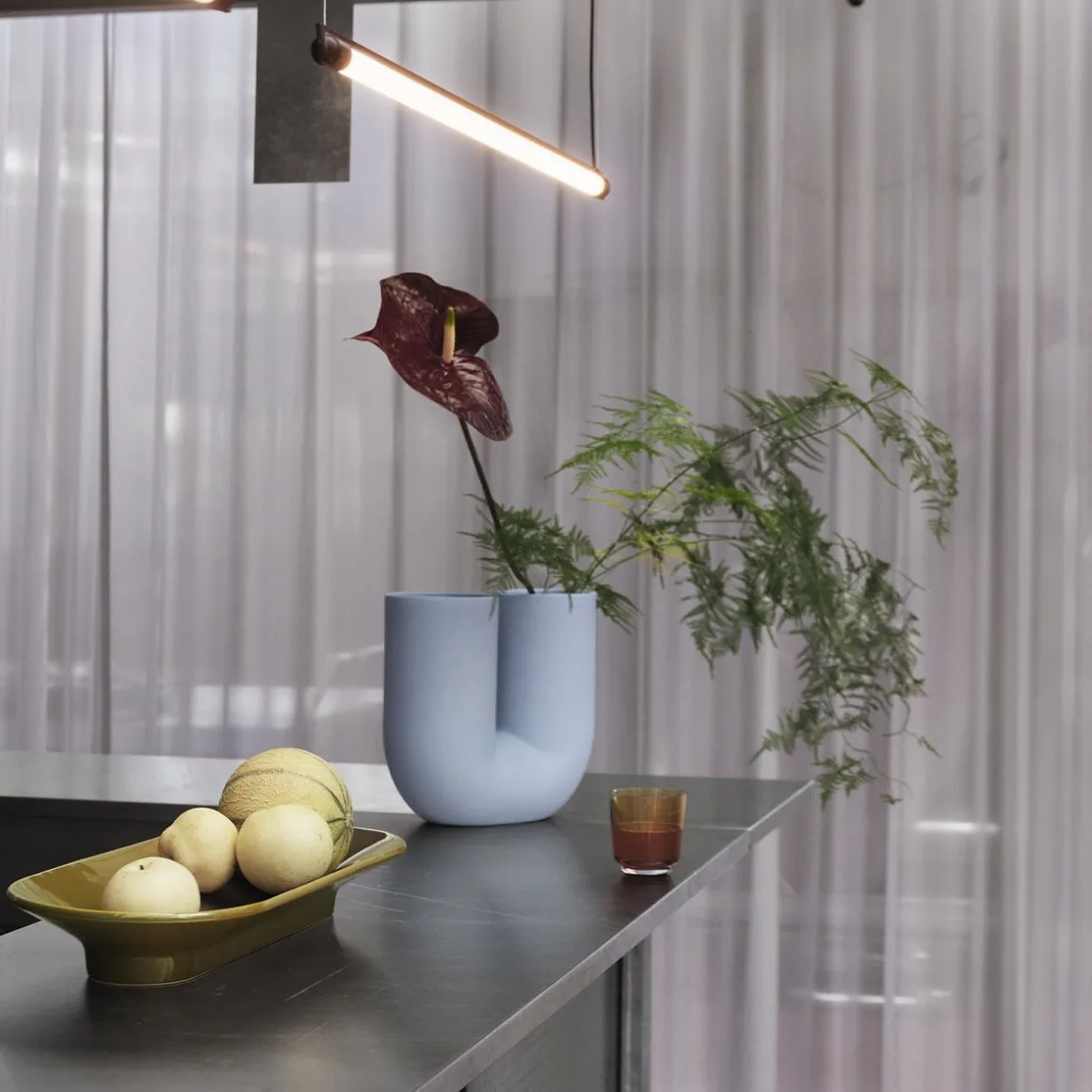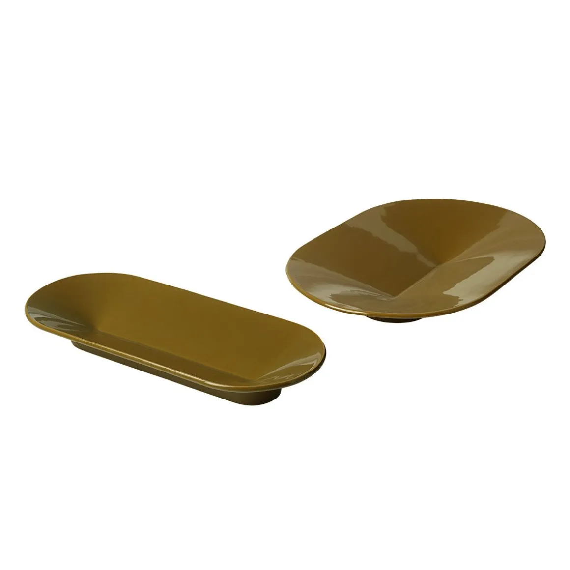Le Mere Bowl est une pièce maîtresse sculpturale, qui est magnifique dans une table ou un espace, qu’il soit utilisé ou non. Sa forme caractéristique est simple mais ingénieuse, puisqu’une ligne en son milieu se déplie sur les côtés pour former un bol. Surélevée par un pied discret, elle semble flotter. Fabriqué en grès céramique tactile, il a été recouvert d’un vernis brillant qui rehausse les ombres qui se forment le long du pli de Mere Bowl. Ce traitement de surface rend le bol sans danger pour les aliments.