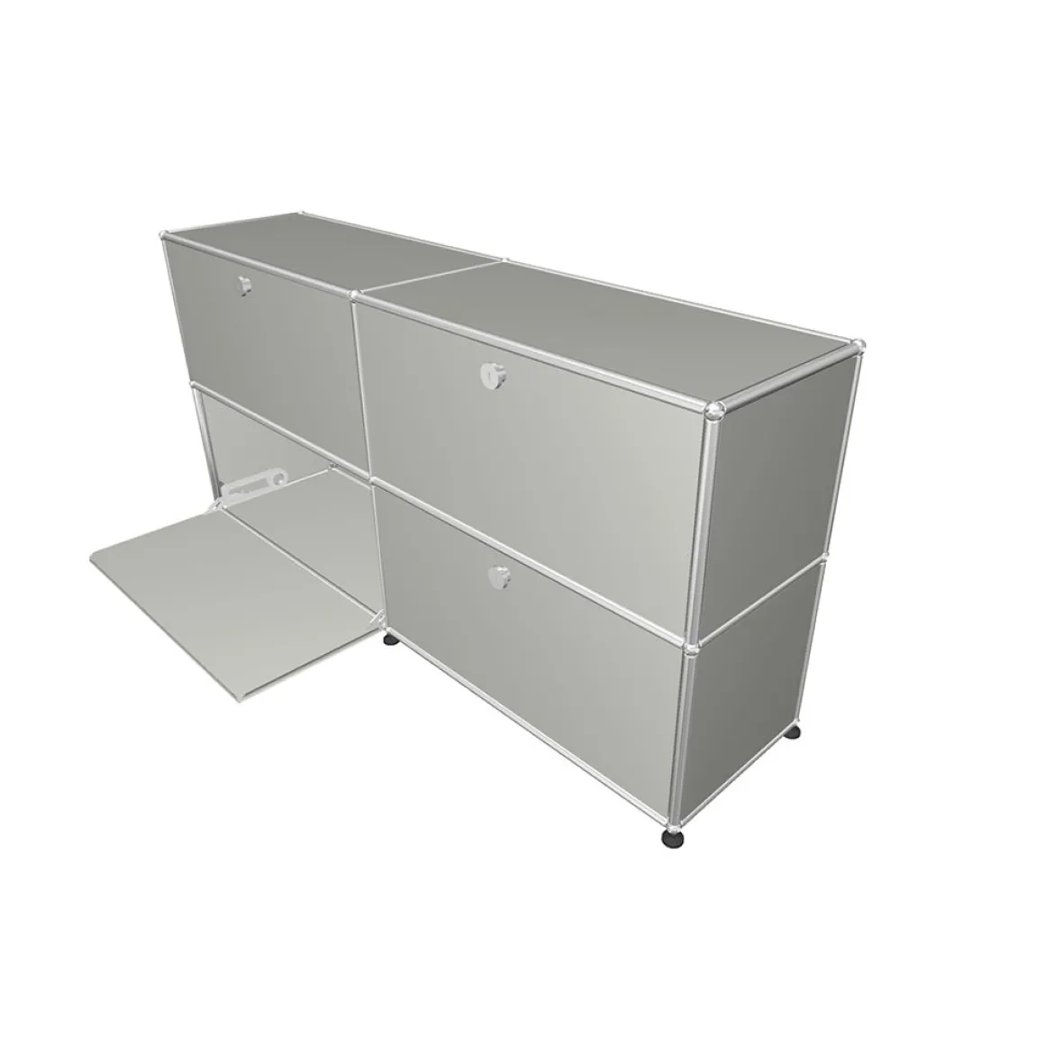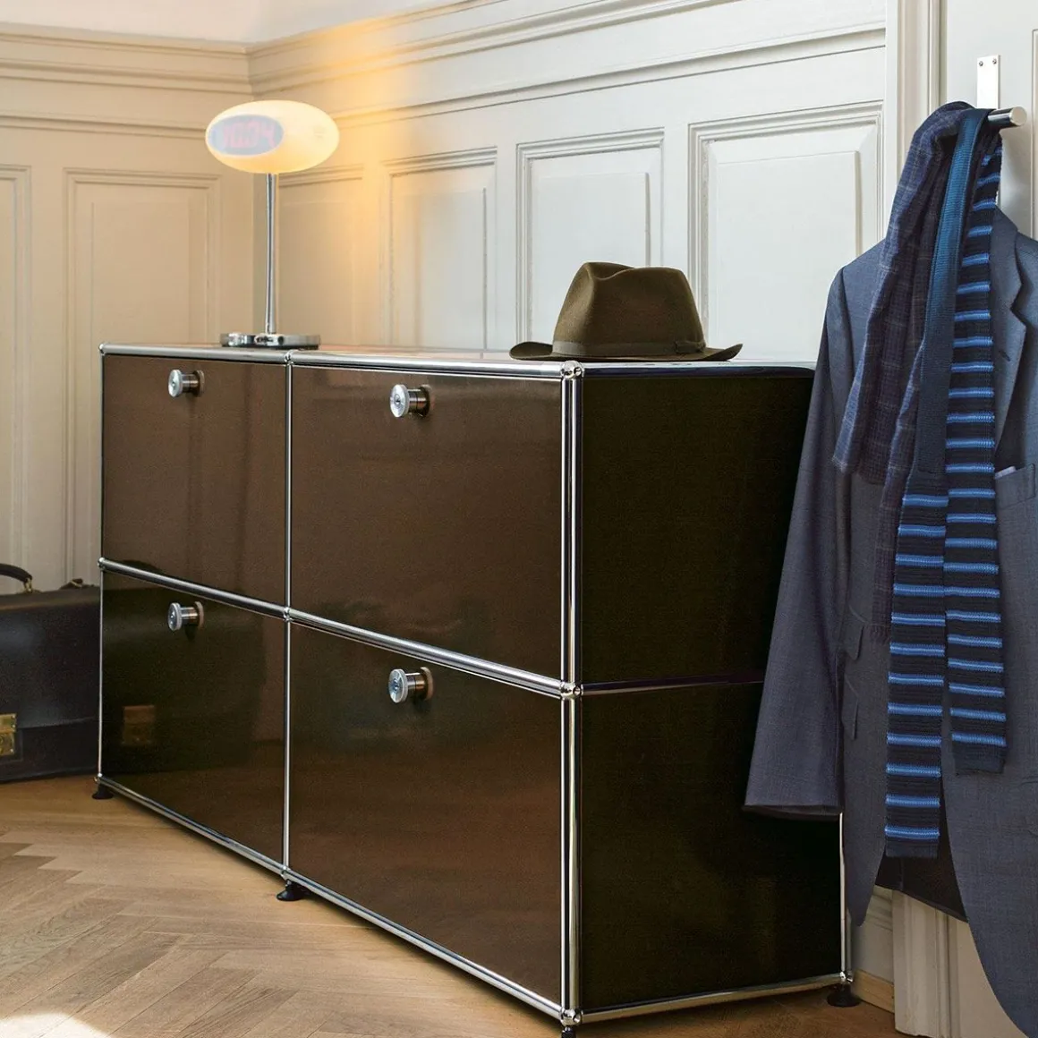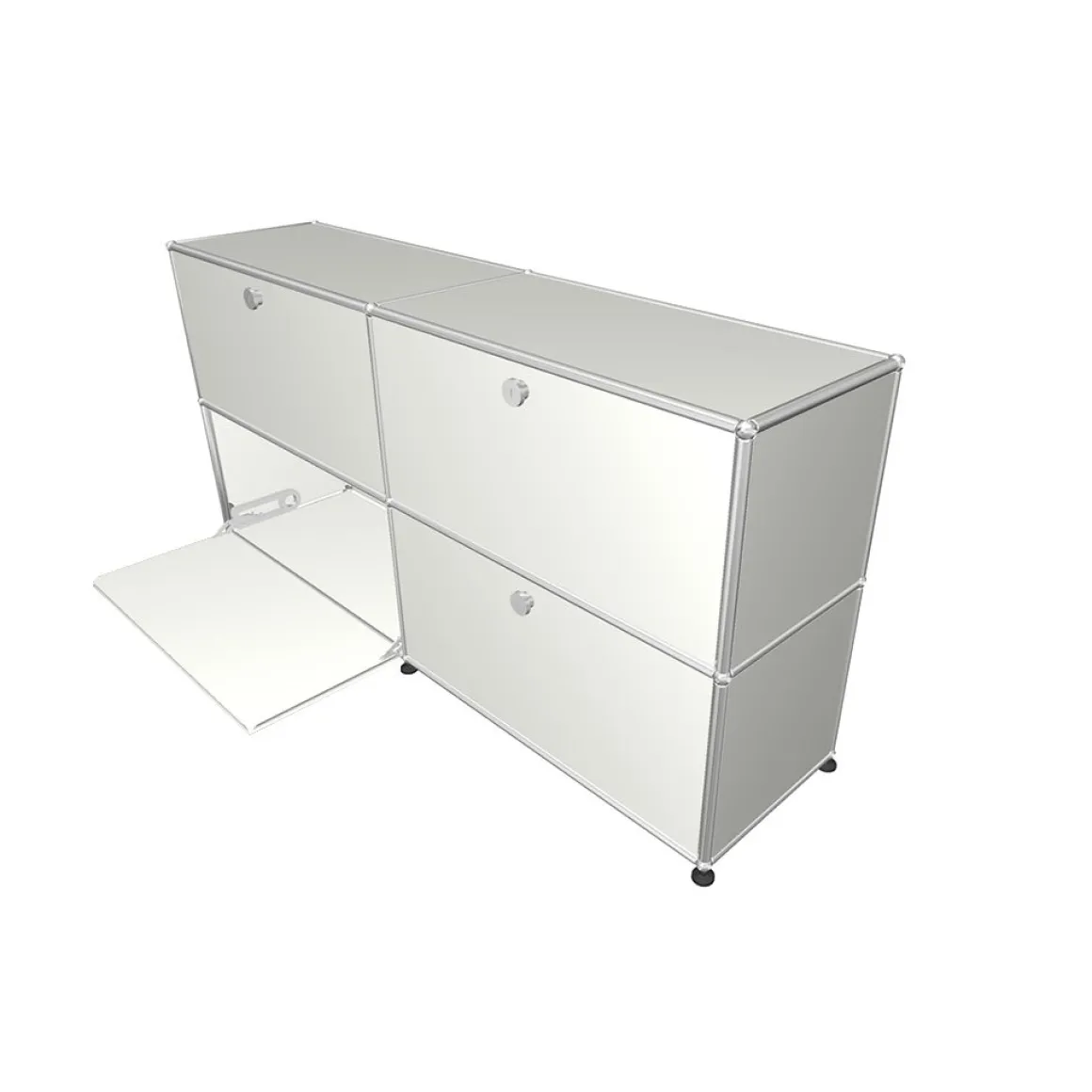 Meuble de rangement composé de 4 portes abattantes (poignées sans serrure). Créés par un architecte et un industriel visionnaires, les meubles USM sont fabriqués en Suisse depuis plus de 50 ans et reconnus dans le monde entier. Leur qualité de fabrication et leurs lignes intemporelles en font un classique incontournable du design, qui trouve sa place aussi bien dans les bureaux que dans les plus beaux intérieurs, classiques ou modernes. Leur conception modulaire permet de les faire évoluer au fil du temps selon les besoins et les envies.