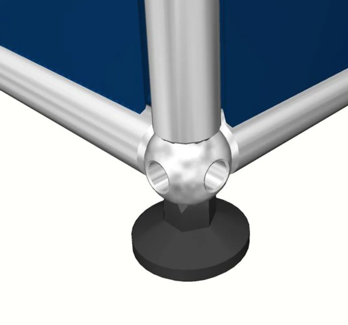 Structure en tubes d’acier chromé assemblés par des boules de connexion, habillée de panneaux d’acier thermolaqué
