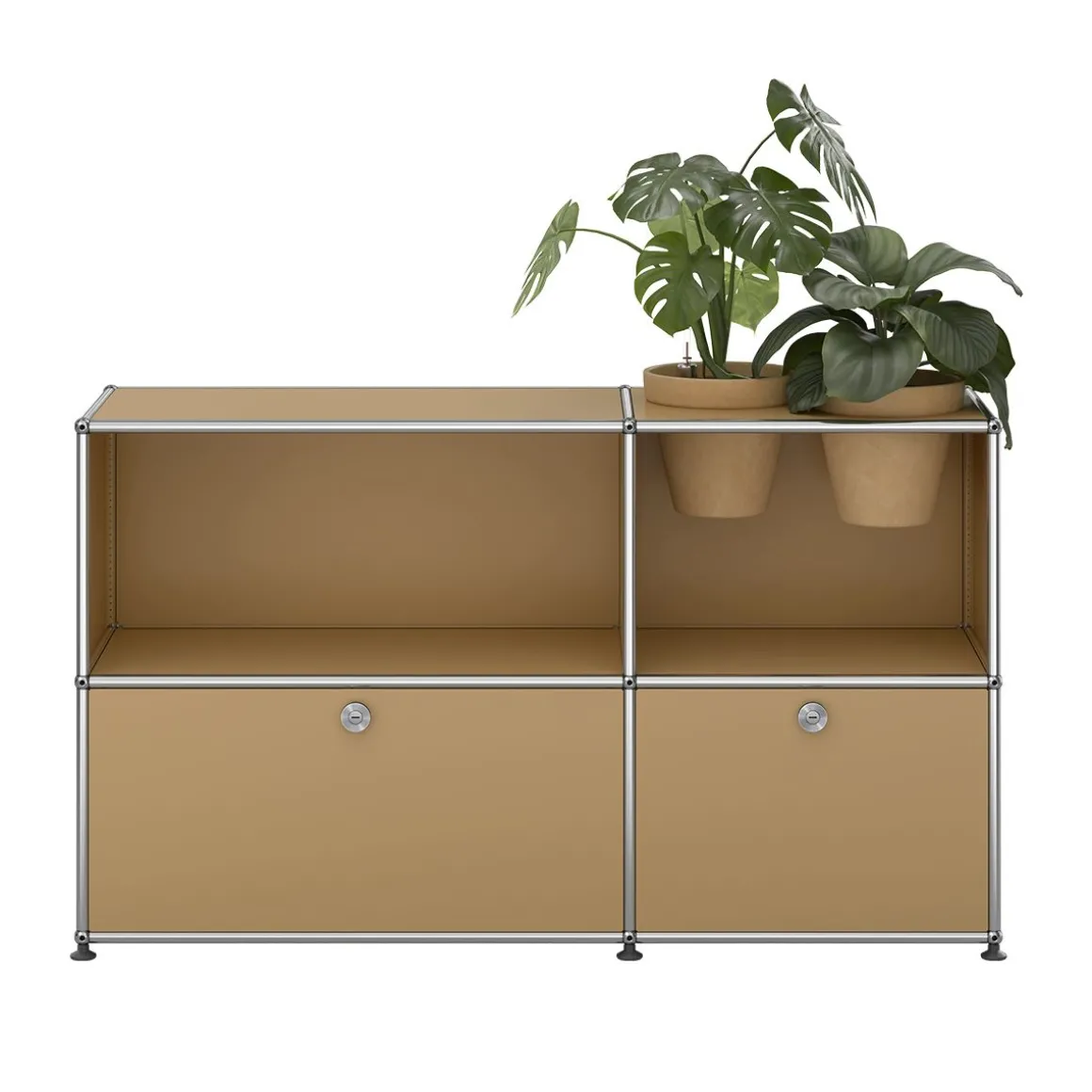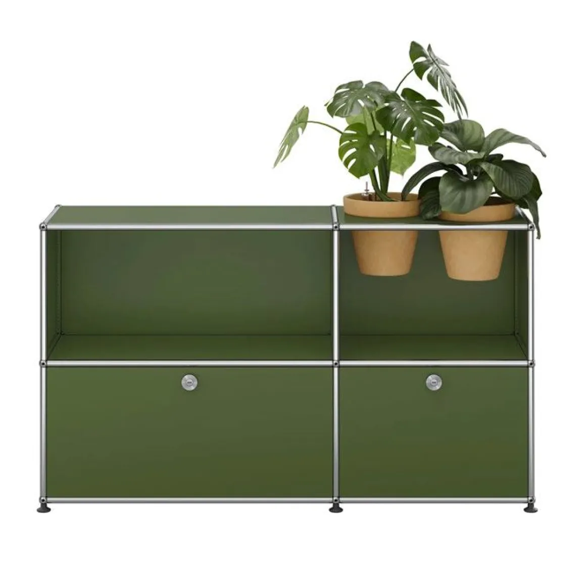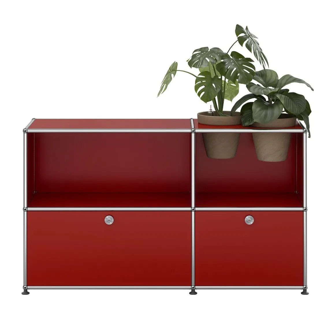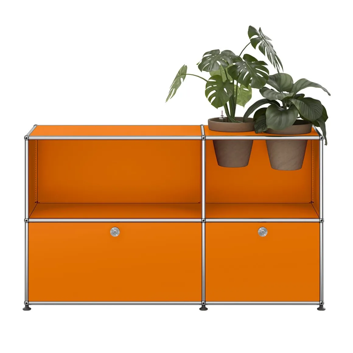 Bien plus qu’un système de rangement, ce meuble USM Haller est un classique du design qui intègre des accessoires pour plantes vous permettant de créer une oasis de verdure chez vous. Ce meuble de rangement USM Haller est fourni avec 2 pots* pour vos plantes d’intérieur, ainsi qu’un kit d’arrosage par pot. Le kit garantit un arrosage régulier de vos plantes. Les plantes et le substrat ne sont pas fournis. Avec deux portes abattantes.