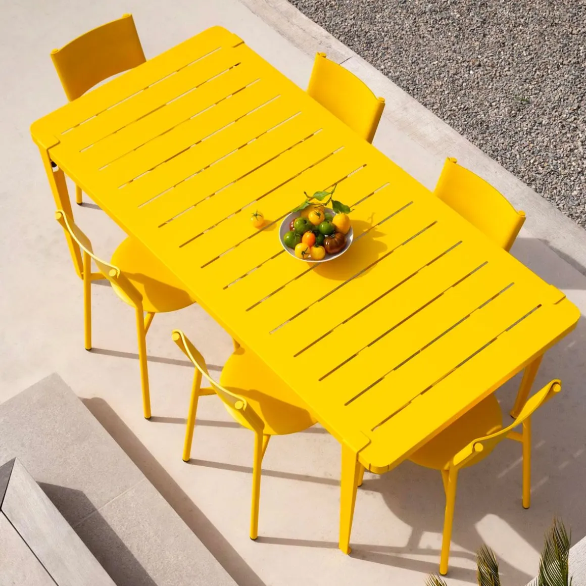 Midi de Tip Toe. La table de jardin de notre gamme de mobilier extérieur MIDI est composée d’un plateau en acier ajouré et de 4 pieds de table en acier. Une table de jardin durable. Créez un coin repas convivial ou un espace détente dans votre jardin grâce à la table de jardin MIDI. Disponible en deux dimensions, notre table de jardin permet d’accueillir 6 à 8 convives. Grâce à son design intemporel et épuré, cette table de jardin en acier aménage tous les espaces extérieurs. Associez-la avec nos chaises de jardin pour déco assortie. Le plateau et les pieds de table sont protégés avec un traitement anticorrosion haut de gamme qui préserve la table de jardin des agressions extérieures comme l’humidité, le soleil, le froid ou la chaleur. La table de jardin de la collection MIDI a été conçue avec des matériaux durables de qualité et est fabriquée à 100% en Europe.