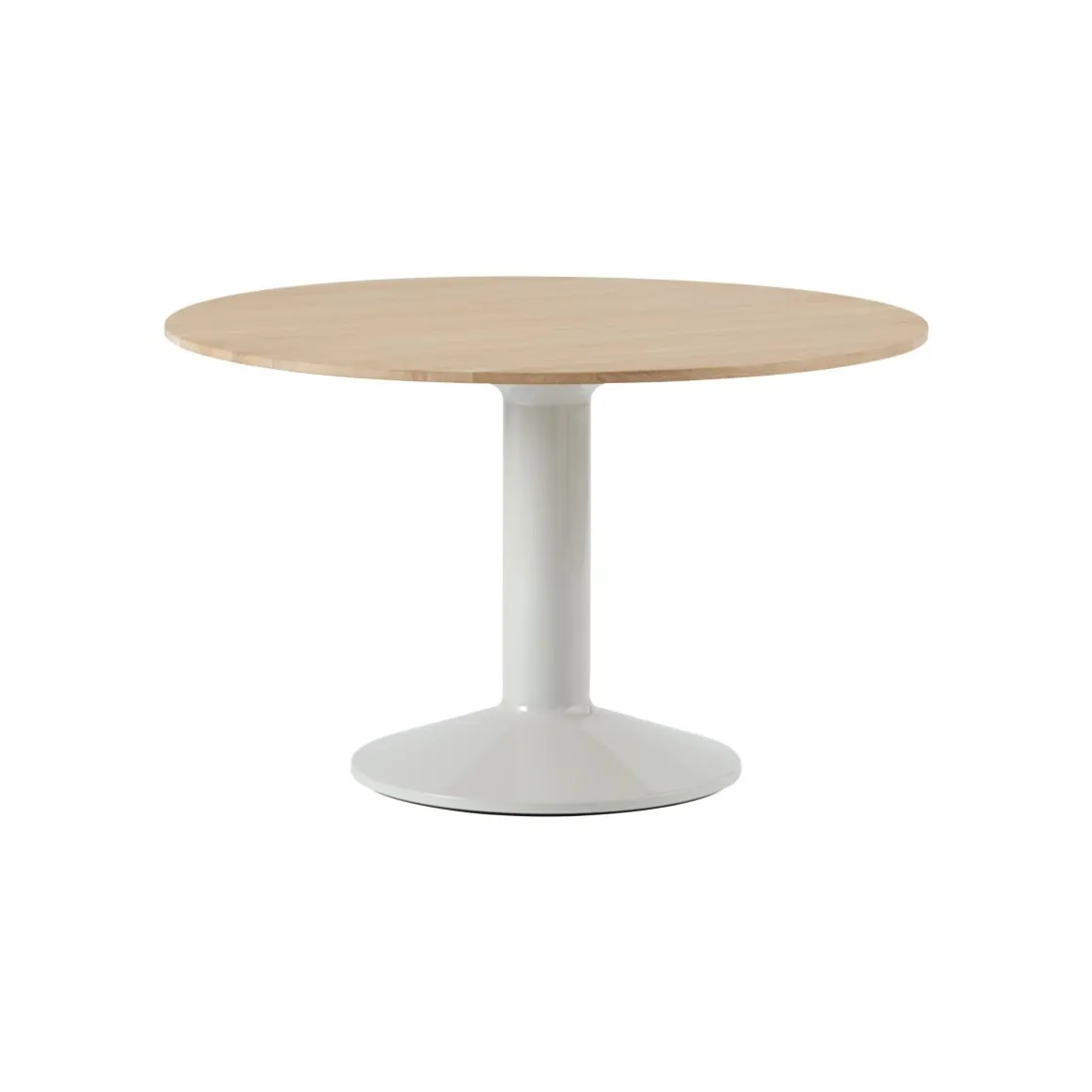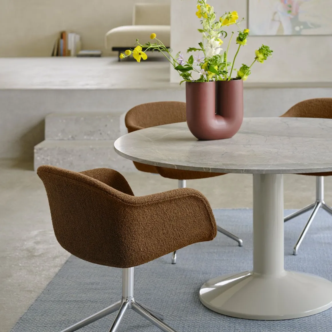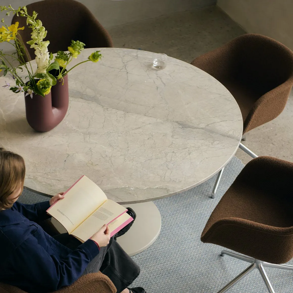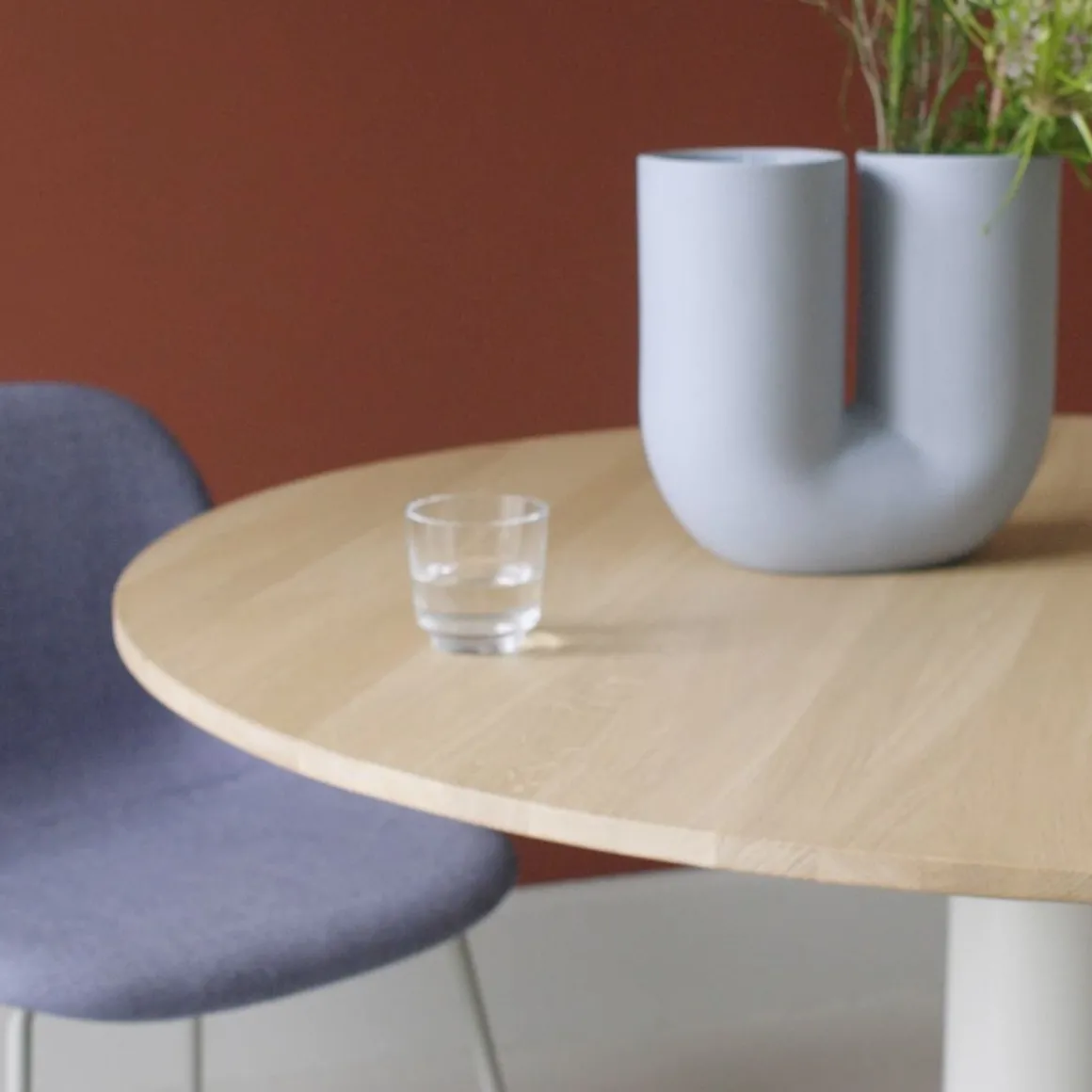 Point central naturel de la maison, la Midst Table est une table à manger généreuse et ronde où les amis et la famille sont pères – et il y a toujours de la place pour accueillir un invité de plus. Sa silhouette raffinée est simple mais caractéristique, rehaussée par des détails distincts et une matérialité contrastée ; chêne massif mat ou linoléum sur une base monolithique en acier repoussé avec une finition haute brillance durable.