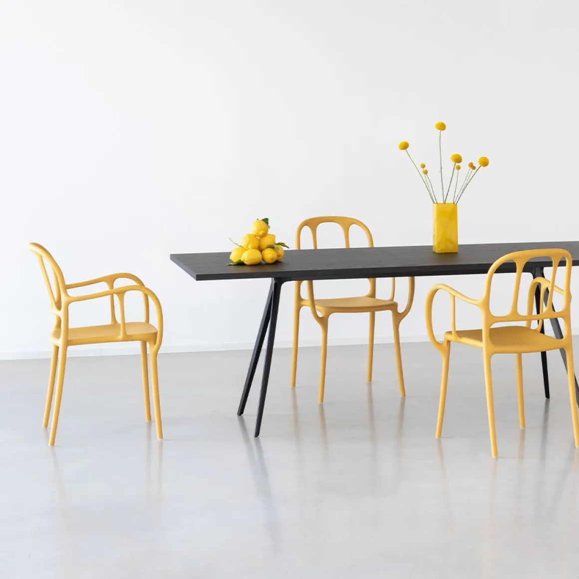 « Imagine de faire avec le plastique ce qu’il est impossible de faire avec le bois. Grâce au savoir-faire de Magis, pionnière dans l’utilisation de la technologie du moulage par injection assisté au gaz, nous sommes arrivés à réaliser une chaise riche en mouvement et expressivité, basée sur les formes du modernisme catalan, flexibles et dynamiques. Nous avons créé une chaise en plastique vraiment élégante, qui se distingue sur un marché désormais saturé. Elle a représenté pour moi un véritable défi: j’ai toujours utilisé des matériaux avec des milliers d’années d’histoires derrière eux, comme le bois, le métal et la céramique, et j’ai créé maintenant ma première production en plastique. Et j’aime ça. » Jaime Hayon