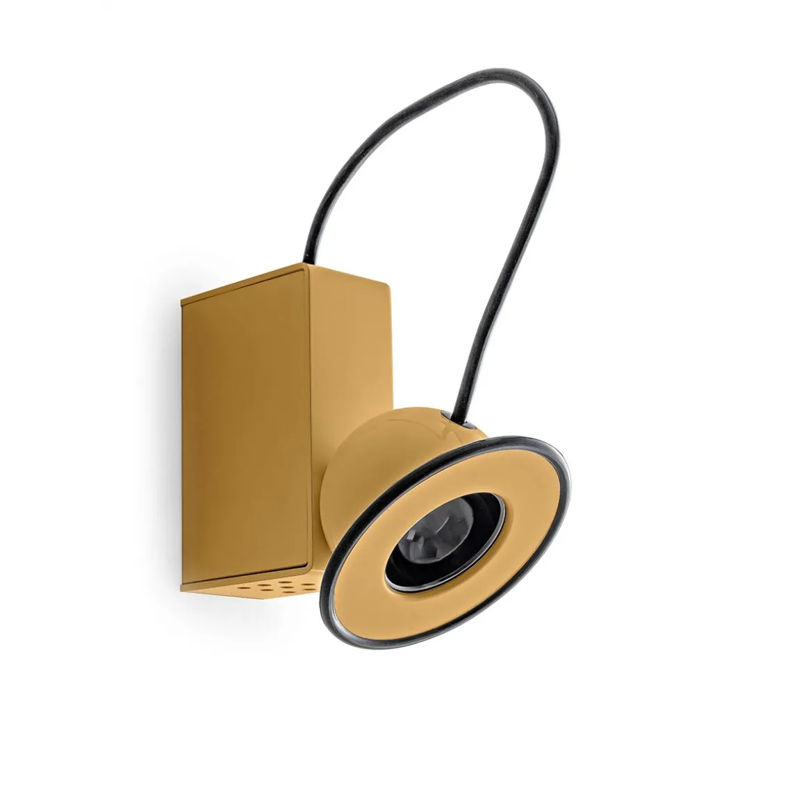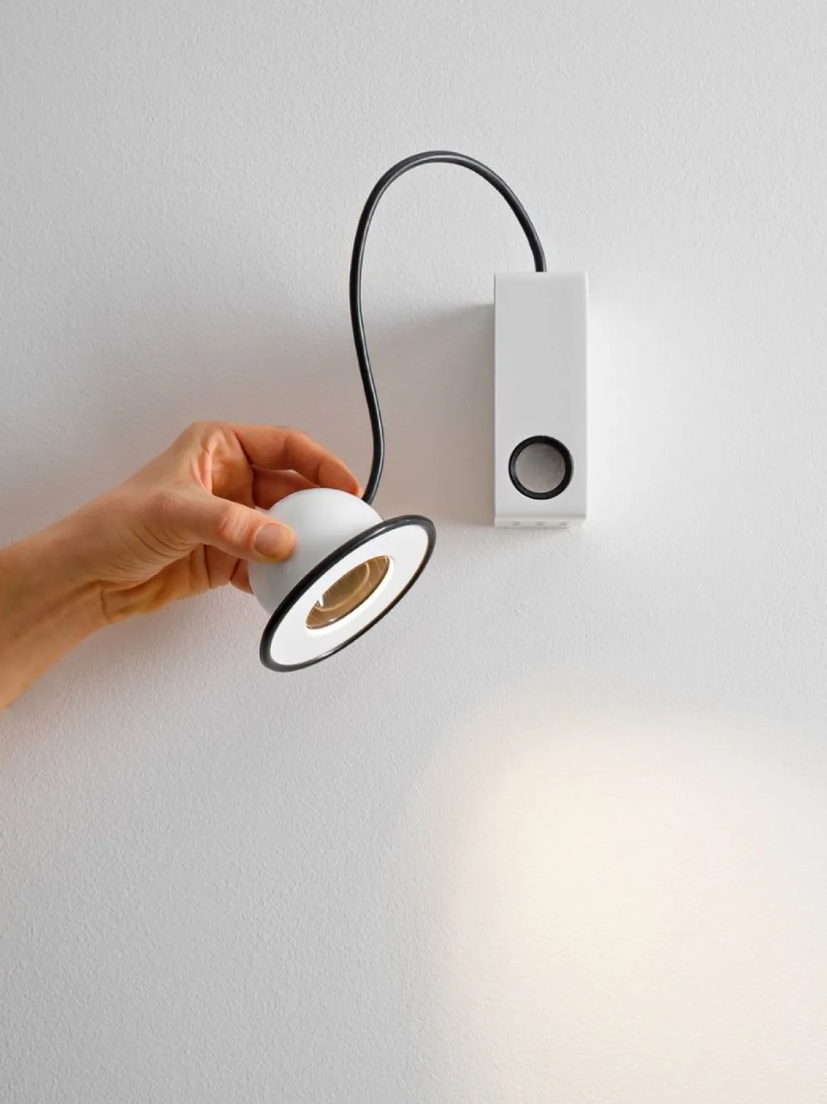 L’applique Minibox est composée d’un corps métallique et d’un œil lumineux irrévérencieux. L’accouplement magnétique de la tête permet d’orienter la lumière, ce qui la rend adaptée à chaque endroit.