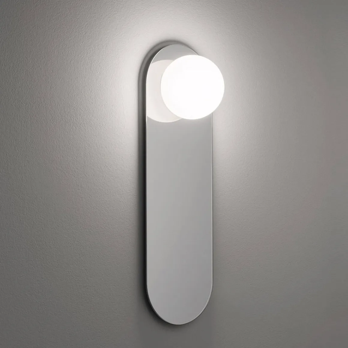Miroir décoratif rond et lumineux avec abat-jour en verre et LED dimmable intégrée. Le miroir 3702 est le plus petit de la gamme. Idéal pour la salle de bain, le salon, la chambre ou le couloir.