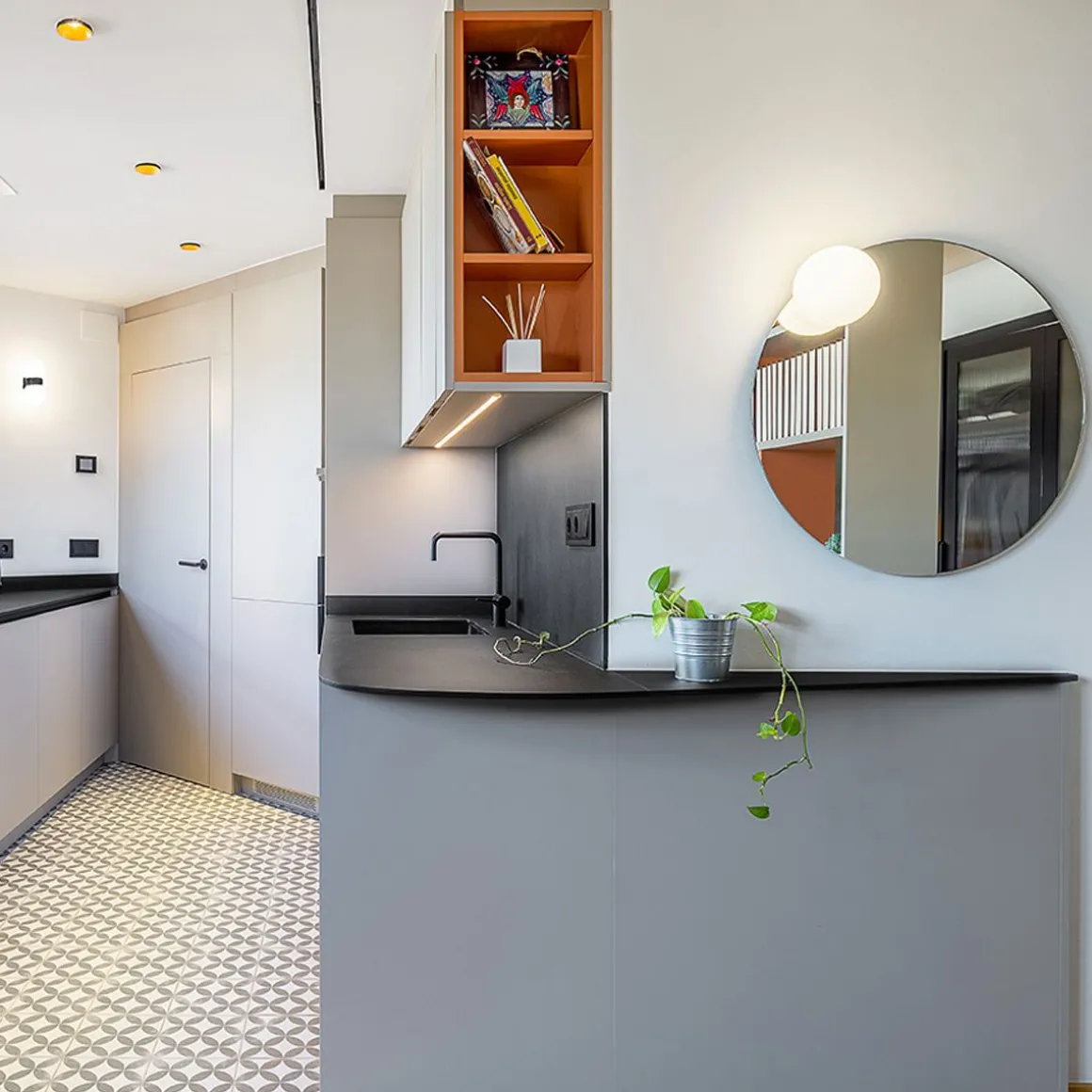 Miroir décoratif lumineux avec abat-jour en verre et LED dimmable intégrée.
