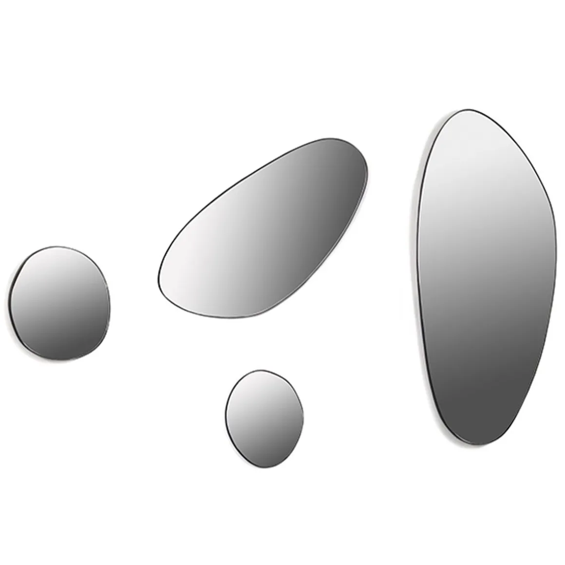La designer Marie Michielssen a élargi sa gamme à succès de miroirs organiques avec 4 modèles plus grands. Si vous combinez plusieurs d’entre eux, ils forment un jeu géométrique fascinant. La caractéristique des miroirs, en plus de la forme, est l’utilisation d’acier noir thermolaqué, un matériau «honnête» qui correspond parfaitement à l’ADN de Serax, dit Marie.