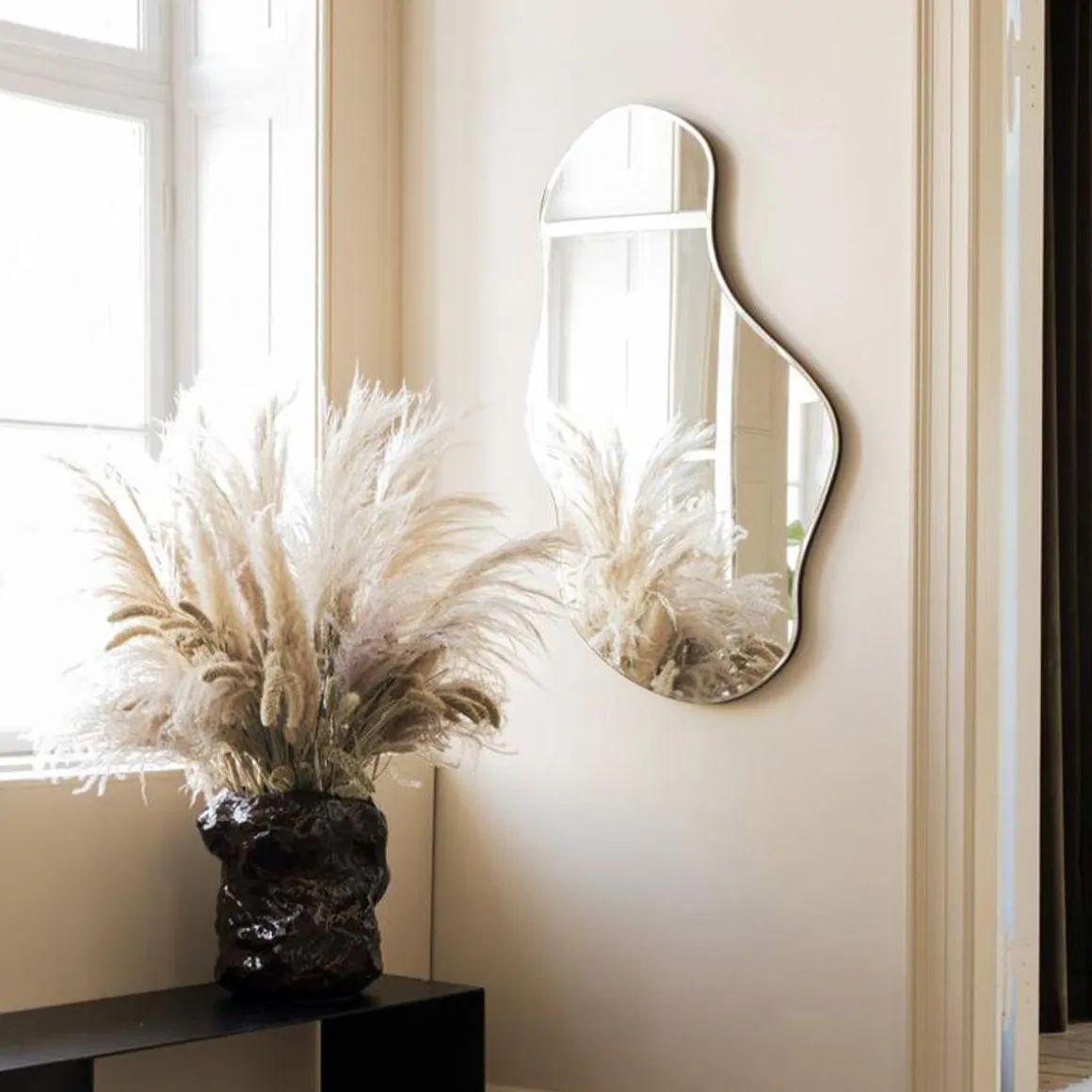 La série Pond marie la forme et la beauté en utilisant des formes organiques, invitant des formes ouvertes et fluides dans votre maison et transformant ce miroir fonctionnel en une pièce murale décorative. Les bords incurvés sont maintenus par un cadre mince en laiton et peuvent être suspendus dans n’importe quelle direction afin que vous puissiez trouver l’ajustement parfait pour votre espace.