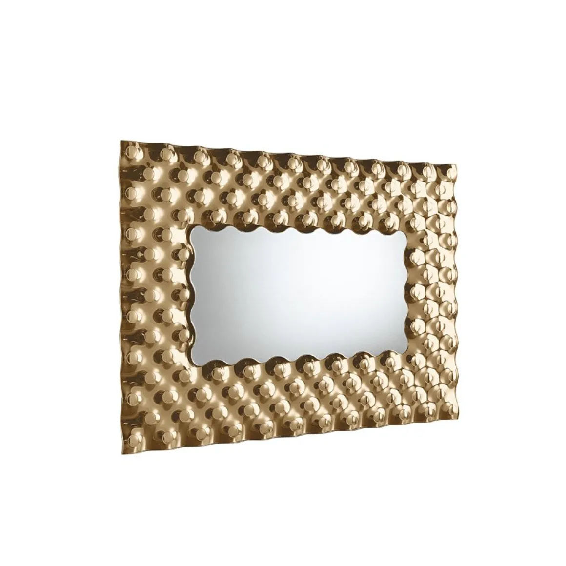 Miroir appuyant au sol et accrochant en verre en fusion de 6mm argenté ; miroir plat de 5mm. Cadre arrière en métal verni. Possibilité d’accrochage en horizontal ou vertical.