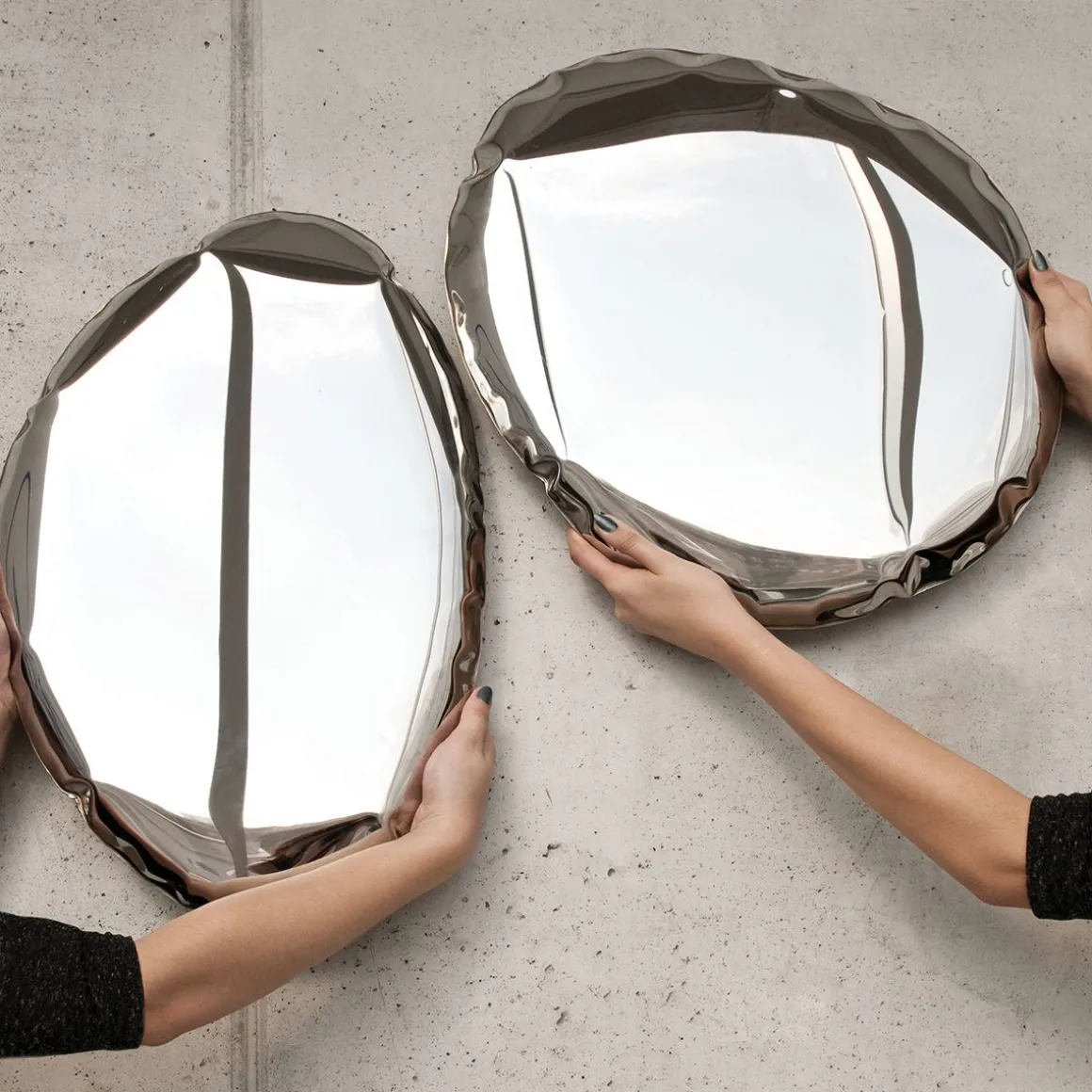 La série TABLA O se caractérise par des formes lisses et optiquement légères inspirées des gouttelettes de liquide et, grâce à sa forme unique, combine le monde du design, de l’art et de la technologie. La collection TABLE est une étape radicale vers de telles transformation. Le miroirs fabriqués avec la technologie FIDU sont le résultat d’une formation libre causée par une pression interne élevée. Ce processus crée des objets d’une grande durabilité mais une structure subtile. Comme les tout premiers miroirs, les TAFLA sont en métal. La technologie FIDU faute ressortir le vrai visage de l’acier et crée des objets aux formes uniques.