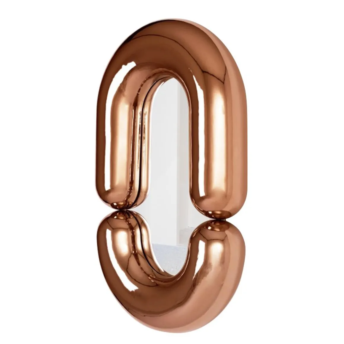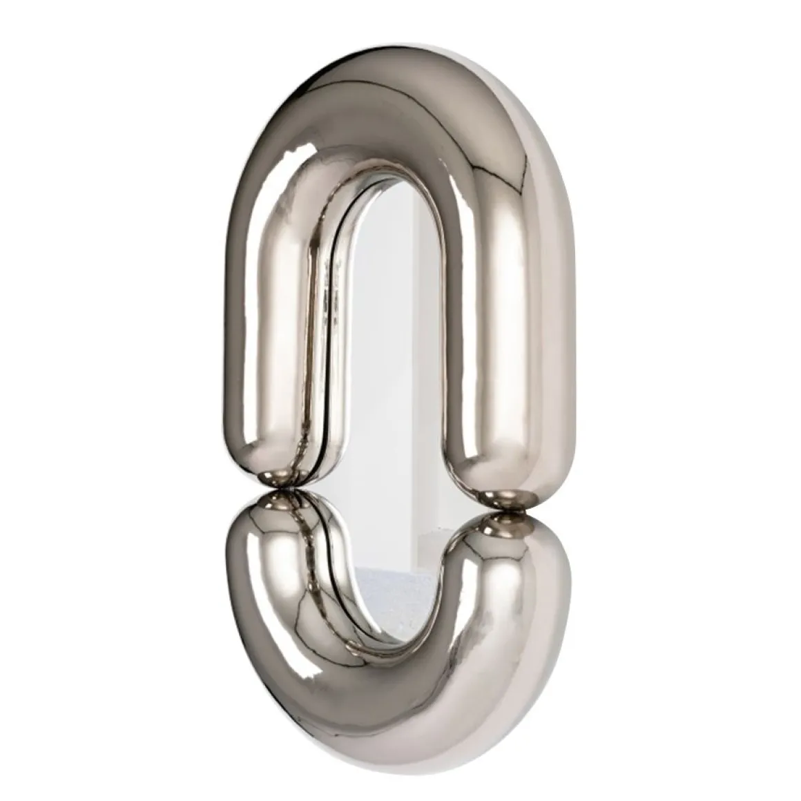 Le miroir Zodiac de Jean-Baptiste Fastrez joue de sa surface réfléchissante pour achever le « boudin » dont il est fait. En apparence gonflé, fabriqué dans une céramique ultra brillante pour rappeler le bateau gonflable dont il porte le nom, le cadre du miroir Zodiac apparait complet grâce au reflet inversé d’une moitié de son anneau à la surface du miroir.