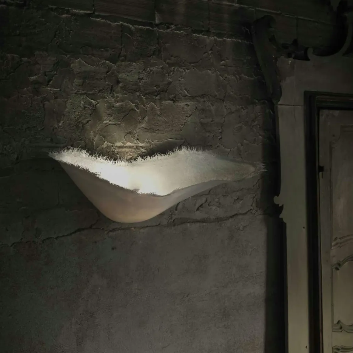 Applique Moby dick de Karman, créée par le designer et directeur artistique de la marque Matteo Ugolini. Faite de fibre de verre avec extérieur lisse et intérieur rugueux.