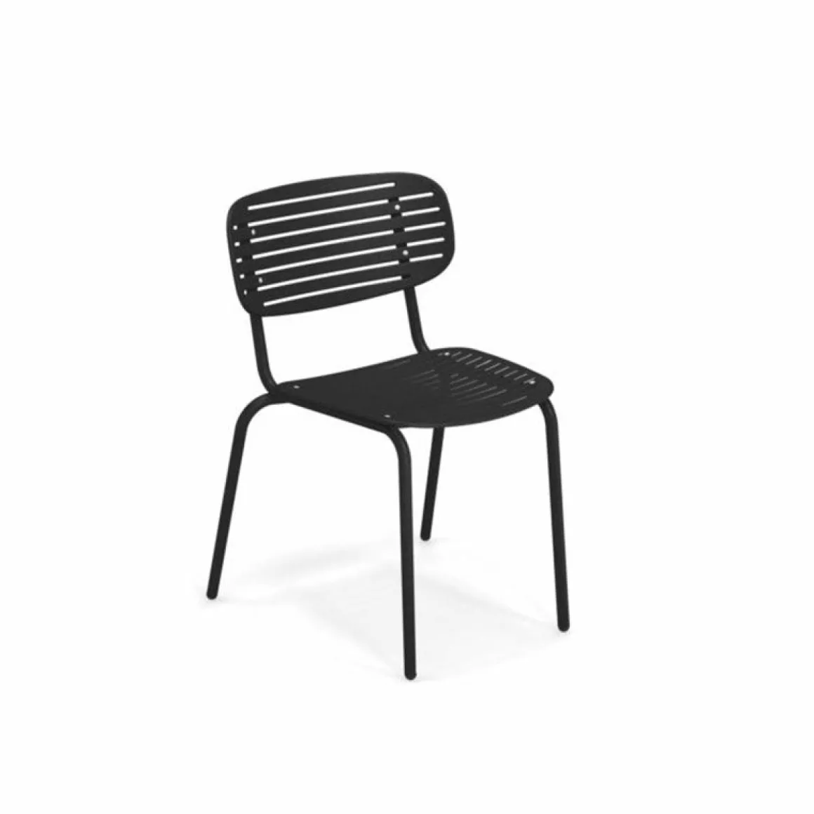 La collection Mom de Coirier s’inspire des plateaux traditionnels japonais « Suiban ». La structure est entièrement réalisée en tubulaire d’acier Fe360, tandis que l’assise et le dossier, caractérisés par la ligne graphique particulière de ces plateaux, sont en tôle emboutie d’acier galvanisé. Finition Emu-Coat.