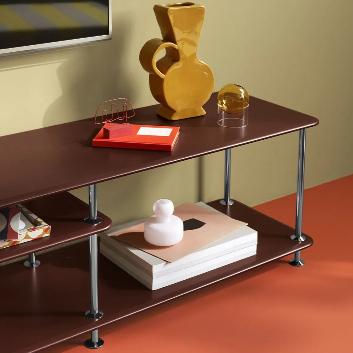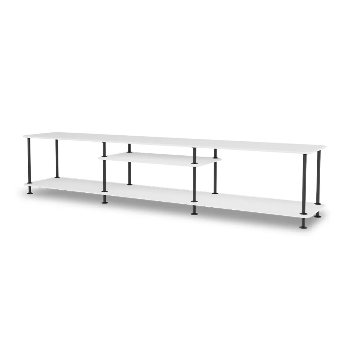 Cette étagère de présentation élégante et basse est parfaitement conçue pour s’adapter sous votre téléviseur ou pour servir de séparateur de pièce élégant. Sa conception polyvalente la rend adaptée à n’importe quelle pièce de votre maison où vous avez besoin à la fois de rangement et d’affichage.