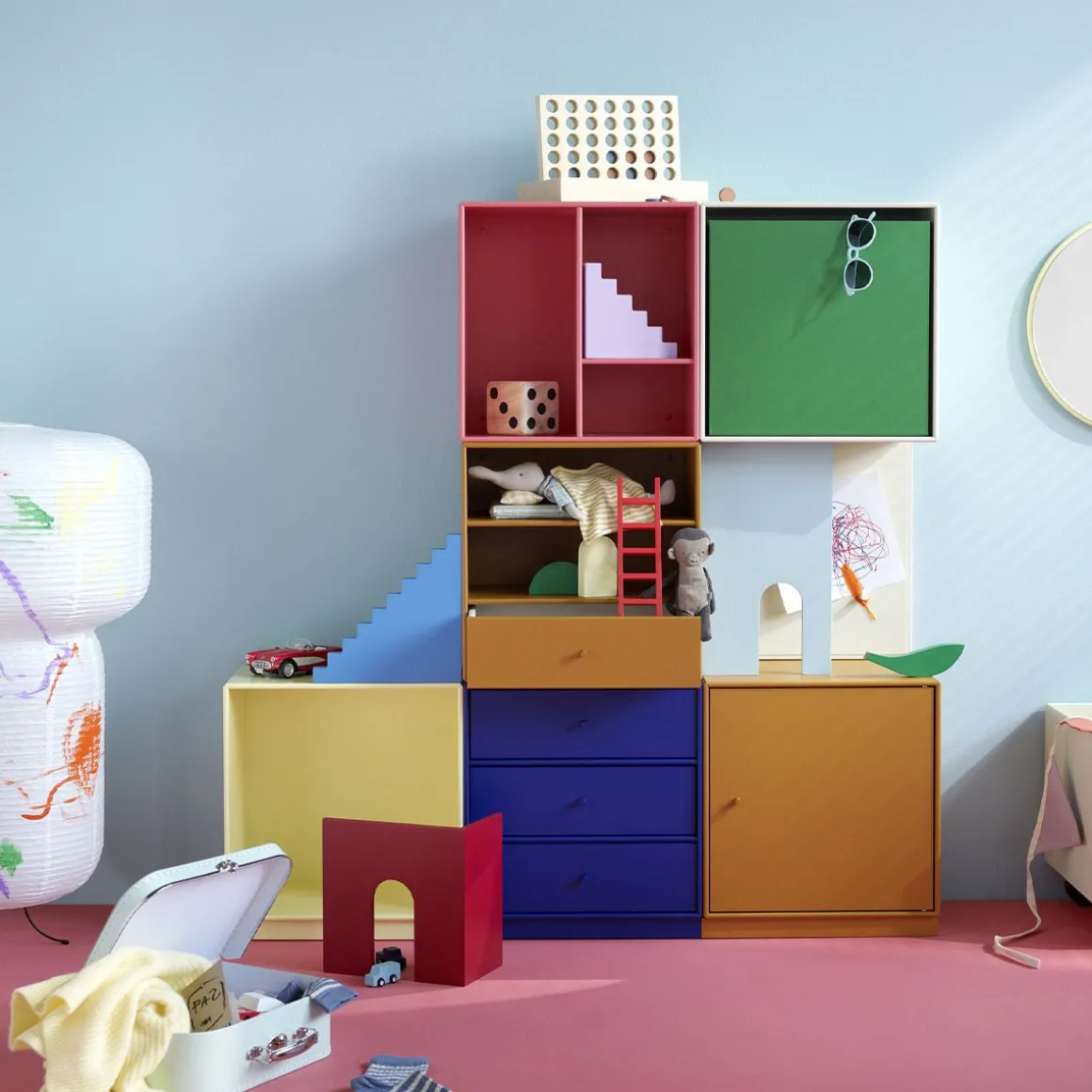 Montana Mini est une série de modules de rangement simples et polyvalents. La série est disponible dans de nombreuses variantes avec étagères, tiroirs et accessoires : miroirs, plateaux, tableau d’affichage et socle – le tout dans 10 couleurs assorties. Le Montana Mini ne mesure que 8 mm d’épaisseur et paraît plus fin que le système Montana original de 12 mm. La série est certifiée Ecolabel européen. Montana Mini est disponible en 10 coloris sélectionnés et peut supporter une charge maximale de 10 kg. Les modules sont disponibles avec des étagères et des tiroirs, ouverts ou fermés, et mesurent 35 x 35 x 25 centimètres. Les étagères sont livrées avec suspension. Des panneaux supérieurs pour une ou deux étagères sont disponibles contre supplément, ainsi qu’un socle pour un module. Les variantes peuvent être utilisées comme modules autonomes ou combinées exactement selon vos besoins et votre style personnel. Complétez votre look Montana Mini avec des accessoires tels que des miroirs ou un tableau d’affichage de la série. Pour plus d’informations sur les produits Montana Mini ou si vous avez besoin de conseils sur les différentes possibilités, vous pouvez trouver de l’aide auprès de votre revendeur Montana le plus proche.