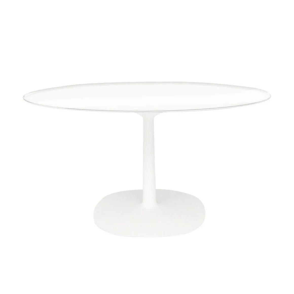 Matériaux : plateau rond en verre, pieds aluminium peint moulé sous pression