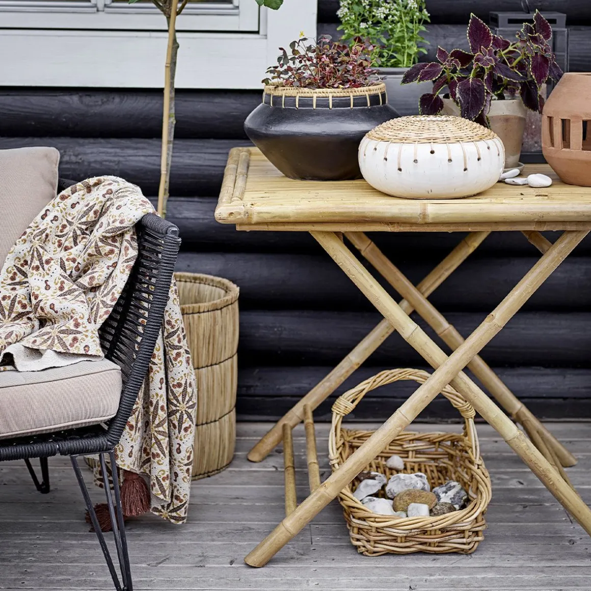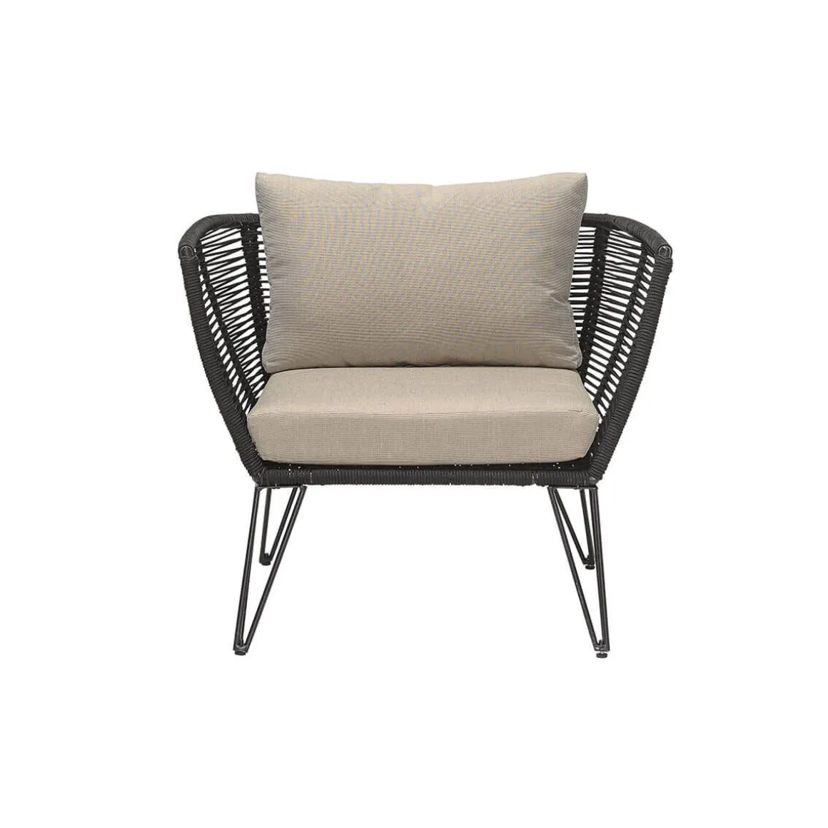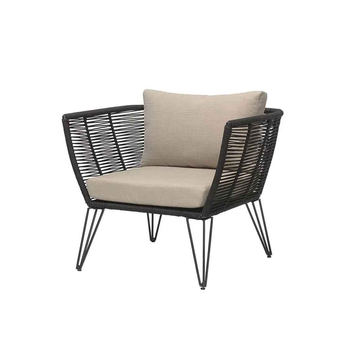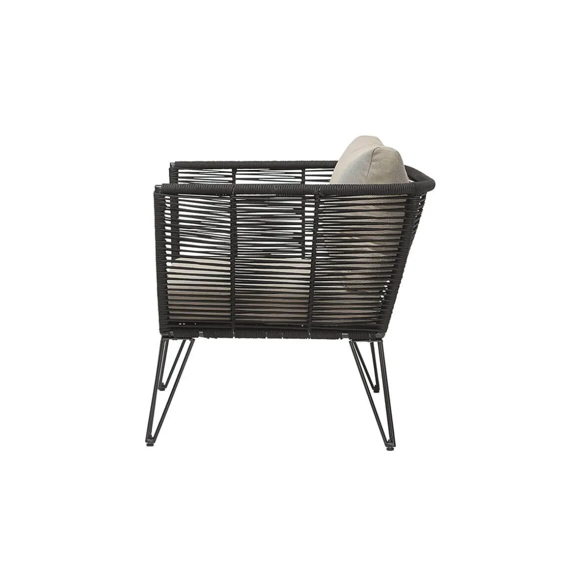 Mundo Outdoor de Bloomingville. La chaise de salon Mundo de Bloomingville est en métal noir revêtu de poudre avec une corde en polyester noir tissée à la main sur le cadre. Les housses de coussin de couleur marron clair sont en polyester et peuvent être lavées à 30 degrés. La chaise de jardin convient à tous les espaces extérieurs, mais en protégeant la chaise de la lumière directe du soleil, la couleur du tissu et la durabilité de la chaise seront prolongées. Profitez d’une chaise d’extérieur très confortable avec des coussins doux, parfaite pour les moments de détente et de convivialité. Il peut être utiliser à l’intérieur comme à l’extérieur.