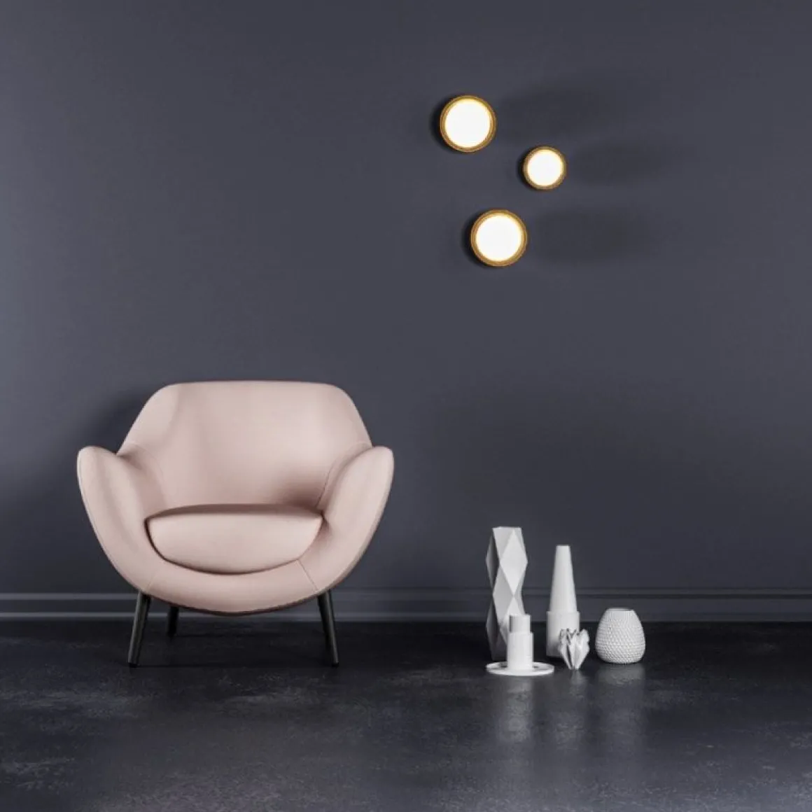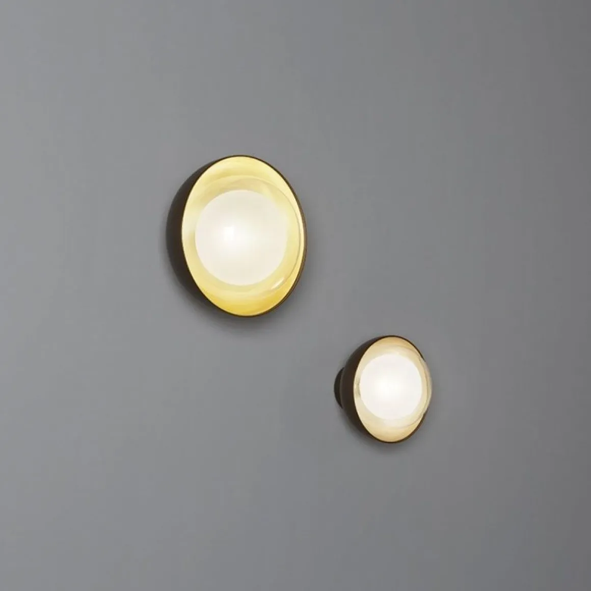 Collection de lampes néo-vintage en métal avec un diffuseur double face en verre borosilicaté. Les dômes métalliques (l’un interne et l’autre externe) ont le côté interne avec différentes couleurs ou finitions: ils peuvent être peints ou finis en laiton poli et cuivre brillant, créant ainsi différentes combinaisons de textures. La collection présente des lampes suspendues, lampadaire, lampe de table, mur et plafond. Les versions suspendue et applique sont fournies avec une autre source G9 située dans la partie inférieure de la lampe.