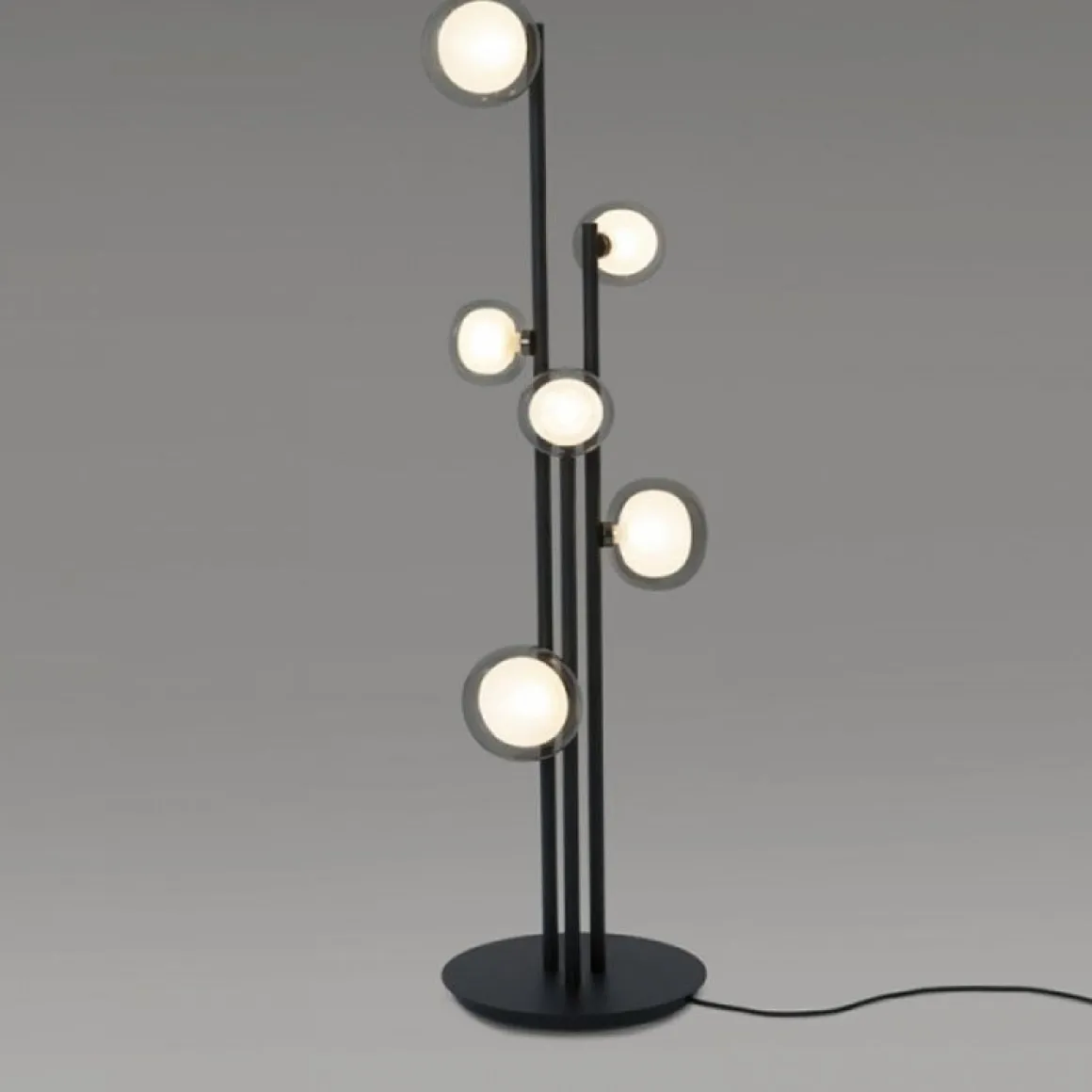 Collection inspirée des années 50 de lampes élégantes et sophistiquées représentant le détail pour enrichir n’importe quel endroit. Un objet brillant sphérique double face en verre borosilicaté rend ces lampes disponibles dans différentes compositions et une structure en métal revêtu de poudre époxy enrichie de détails en laiton brossé ou en chrome noir. Différentes variétés sont disponibles pour toutes les situations: lustres (en cinq modèles différents) ou lampe de table, chevet (plus petit), sol ou mur (disponibles en trois modèles différents pour une installation personnalisée simple ou composite). Richesse et sobriété en un seul élément.