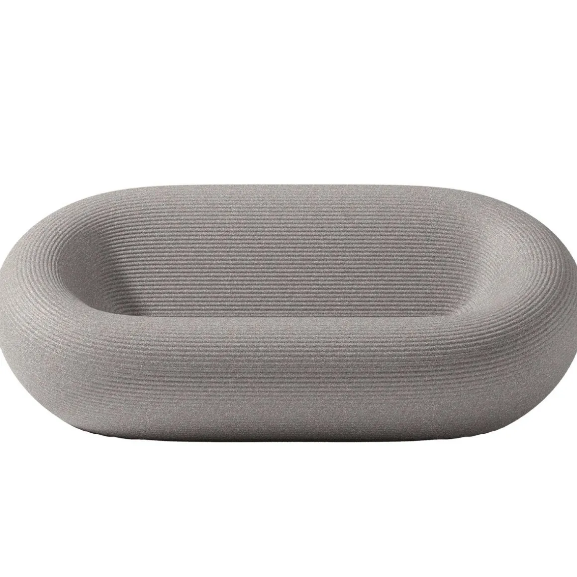 Nami de Qeeboo par Stefano Giovannoni. Le canapé Nami se caractérise par une forme linéaire au centre, puis circulaire aux deux extrémités. Deux canaux d’évacuation de l’eau sont intégrés à sa partie centrale. Il peut accueillir de 2 à 3 personnes. Disponible en six coloris, trois d’entre eux sont unis, les trois autres sont issus du recyclage et du mélange de matériaux de deux ou trois nuances différentes.
