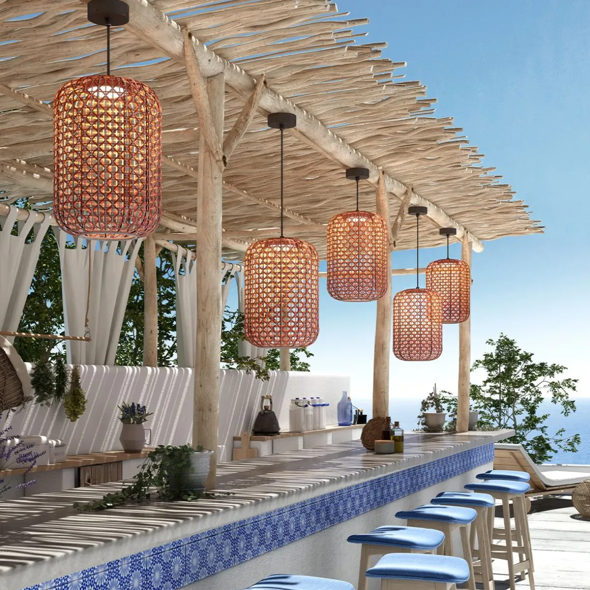 Cala Dans est une petite crique de Cadaquès uniquement par des sentiers pédestres ou par la mer. Un coin préservé de la Méditerranée où la végétation et la veille d’un vieux phare font de ce lien un lien naturel ou l’on n’entend que le bruit de la mer et des oiseaux qui volent au-dessus de la côte. Avec Nans nous avons voulu mettre en valeur le savoir-faire artisanal des abat-jour et chercher une manière différente de tisser en associant différentes couleurs et formats pour créer un véritable style méditerranéen.