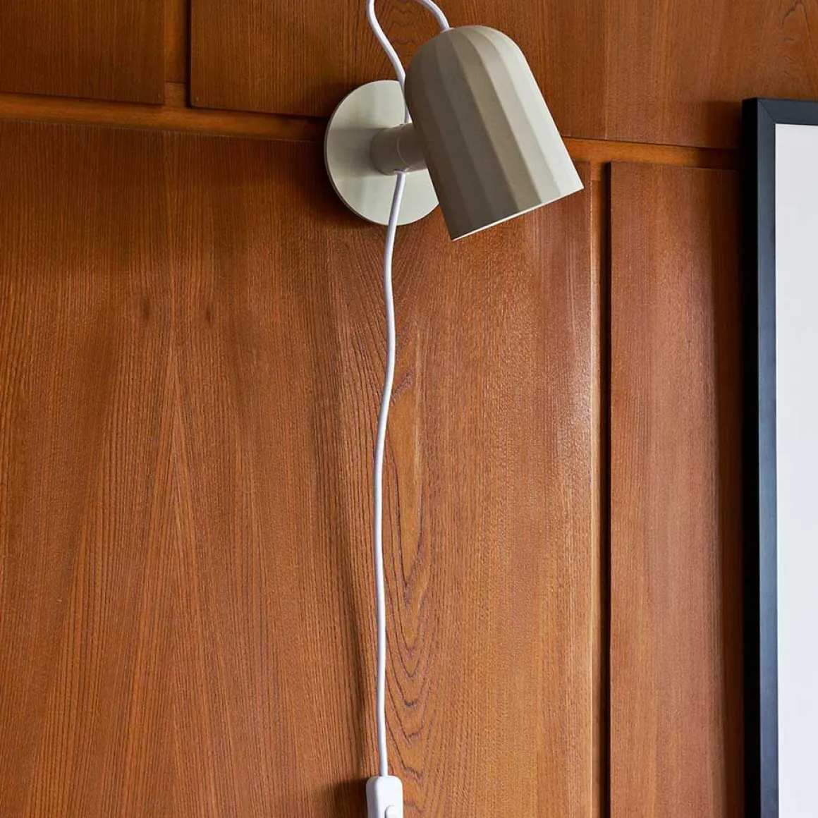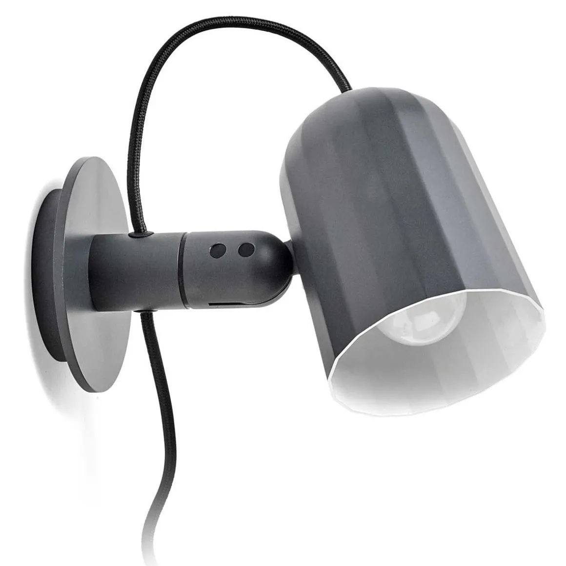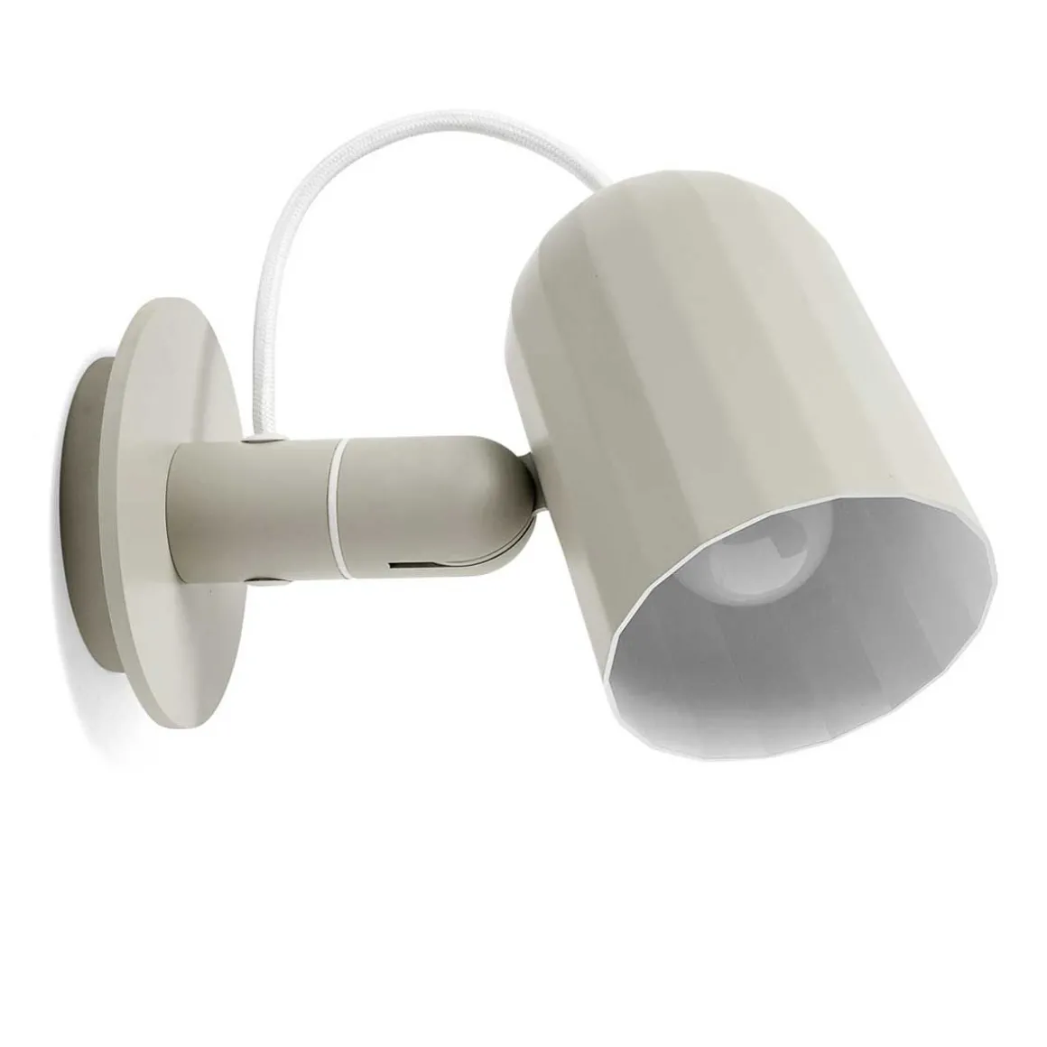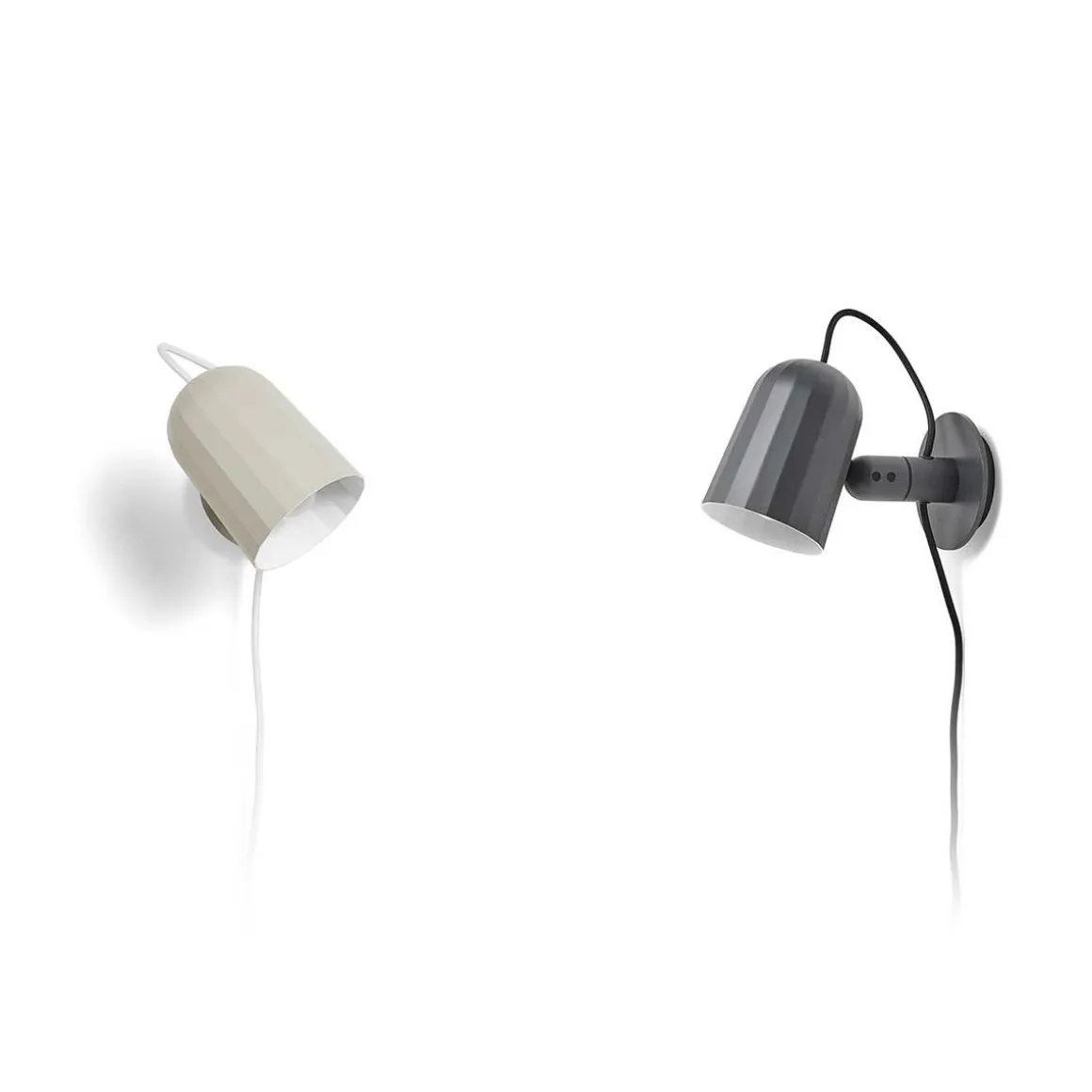 Noc Wall Applique de Hay. Noc Wall est une applique murale adaptable en aluminium moulé sous pression avec une teinte facettée et une finition laquée lisse. Le mécanisme rotatif offre deux points de réglage et la lampe principale est fixée dans le support mural permettant au câble de pendre librement à la lampe à brancher dans une prise murale. Noc Wall est un luminaire polyvalent pour une utilisation quotidienne dans un environnement domestique et commercial. Il est fourni avec une ampoule et un câble de deux mètres avec interrupteur on/off. Noc Wall est disponible en gris foncé et en blanc cassé.