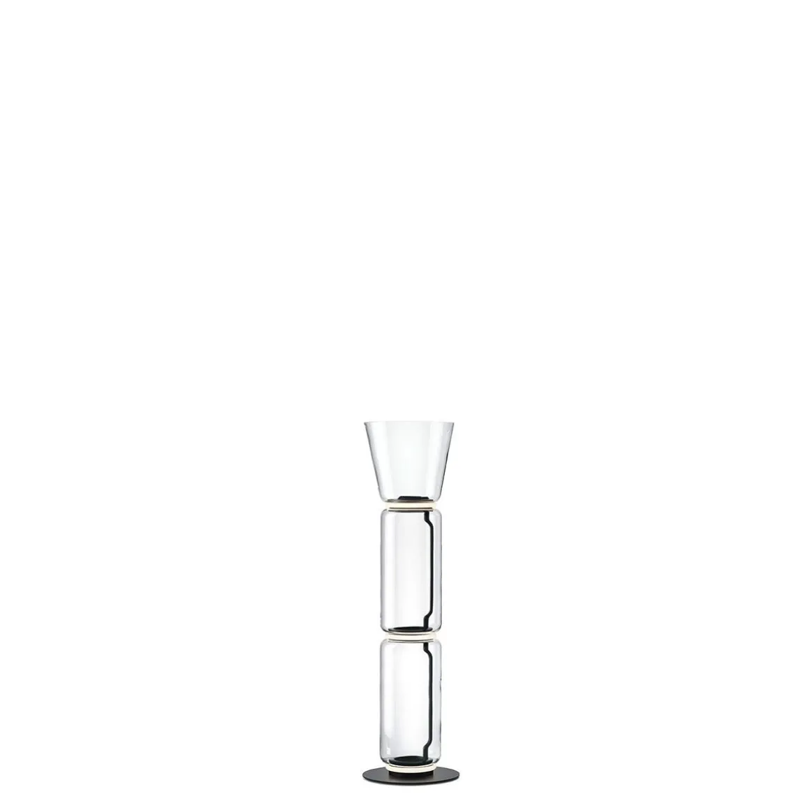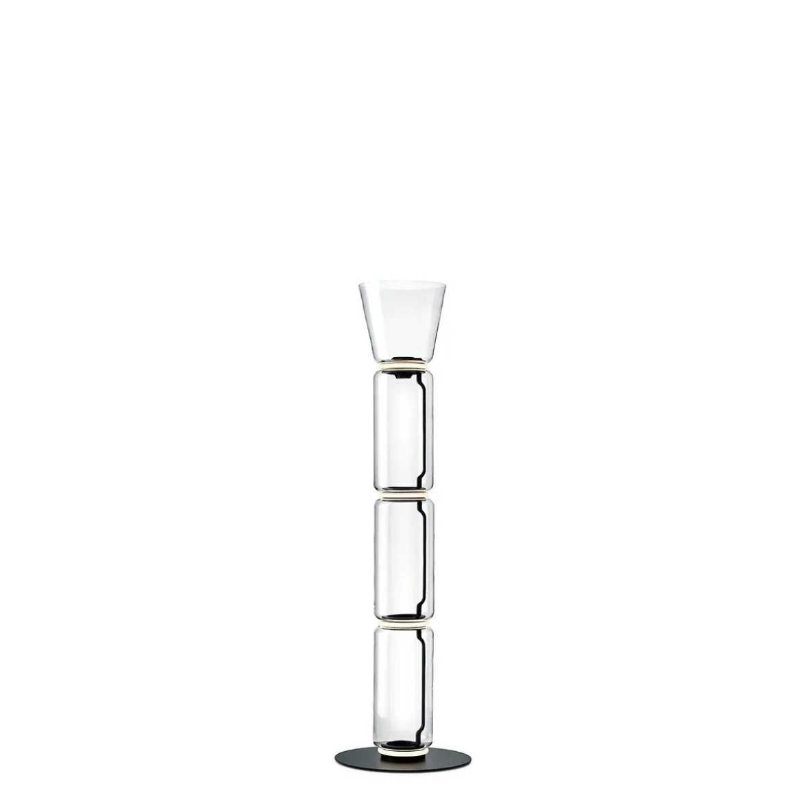 Noctambule : l’oiseau de nuit ou le fêtard. La plupart du temps invisible pendant le journée, mais se terminant par une activité glamour la nuit. L’analogie est approprié. La nouvelle collection de lampes et composée de modules en verre soufflé, transparents et donc quasi inexistants le jour. Mais, lorsque vous les allumez dans le noir, il se transforment en magnifiques lampes lumineuses. Les modules de verre cylindriques définissent la grammaire de base de la collection. L’unique module est une lanterne. Plusieurs modules empilés les uns sur les autres créent une colonne lumineuse ou un lustre suspendu dans un puits d’escalier. Des éléments supplémentaires, tels qu’un dôme en verre ou une tête en forme de cône, permettent une performance accrue, comme un éclairage au sol et une suspensions. La technologie LED soigneusement calibrée qui alimente les lampes est intégrée discrètement dans les jonctions entre les modules de verre. Presque absent, mais prêt à être activé à tout moment.