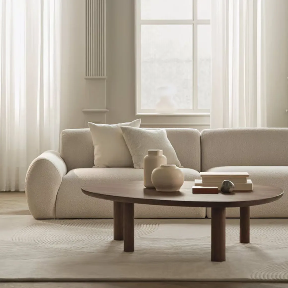 Nuvol de Bolia par Ramón Esteve. Avec ses formes organiques fluides et sa conception modulaire polyvalente, le canapé Núvol invite l’artisanat dans votre intérieur. Ce canapé, dont le nom signifie « nuage » en catalan, vous enveloppe d’une douceur luxueuse, qui vous donnera l’impression d’être sur un petit nuage.